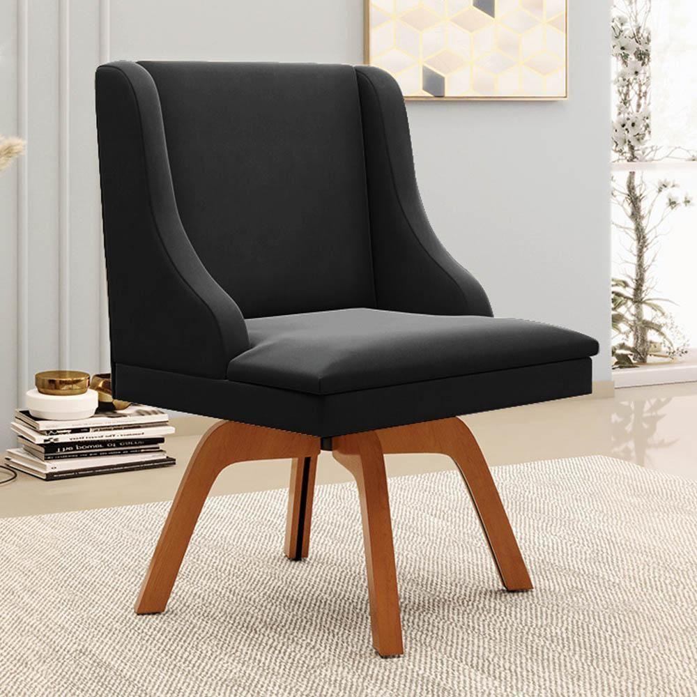 Kit 4 Cadeiras Estofadas Giratória Para Sala De Jantar Lia Suede Preto - Ibiza