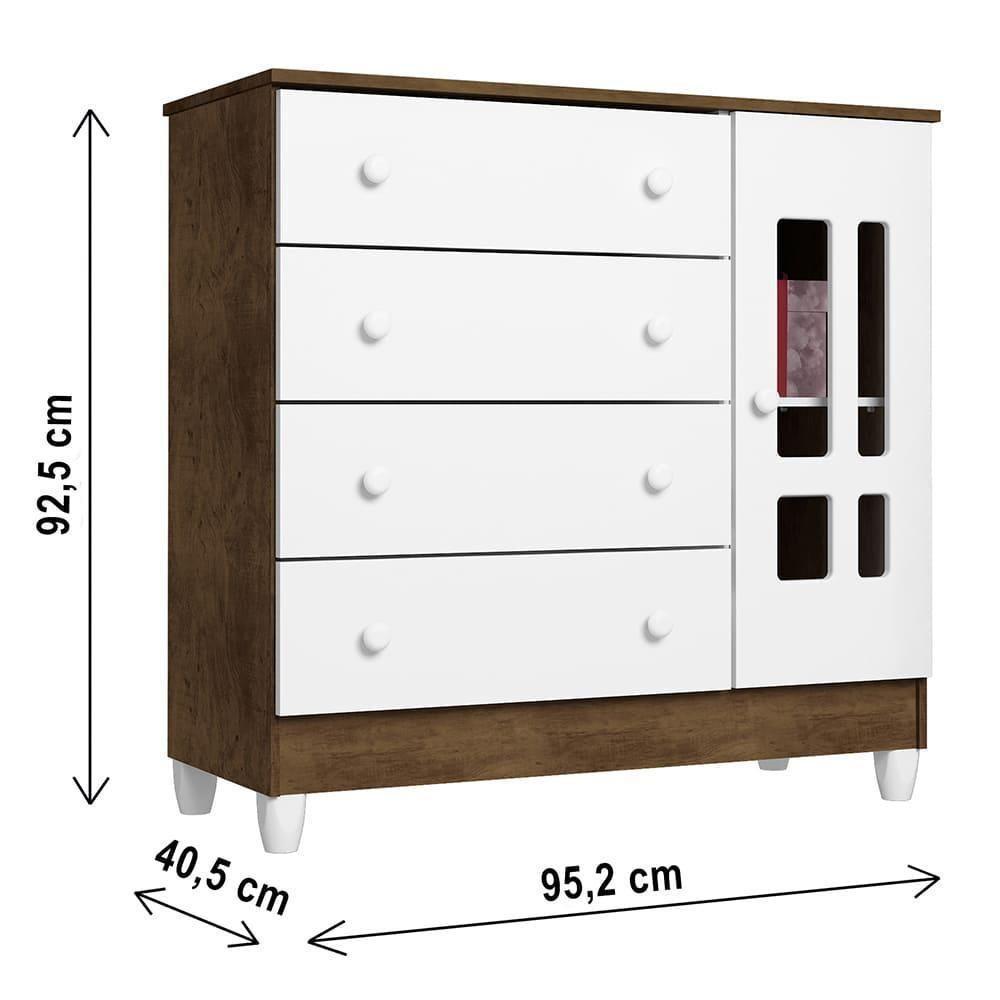 Quarto De Bebê Ariel Guarda Roupa 4 Portas Com Gavetas Cômoda Infantil 4 Gavetas Com Porta Amadeirado Carolina BabyO dormitório perfeito para combinar com a decoração que você escolheu para acolher o seu baby. O guarda-roupa em que você tem ainda mais espaço para acomodar os pertences do seu bebê, de forma que as roupas não fiquem amassadas ou apertadas. Com cabideiro, prateleira e gavetas, as mamães podem organizar tudo de forma prática e funcional. Peça fabricada em MDP e MDF de alta resistência mecânica, a cômoda é uma peça chave na organização de objetos, roupas e acessórios do bebê. O móvel tem um sistema de trava anti-tombamento e corrediça metálica nas gavetas. Este produto se encontra disponível nas cores Branco Brilho e Branco Fosco com Amadeirado. INFORMAÇÕES TÉCNICAS CÓDIGO DO FABRICANTE: 301867 MODELO: Quarto Infantil Completo. TIPO DE PINTURA: UV, com acabamento por camadas de verniz foto curado de composição não tóxica. CÔMODA ESTRUTURA DA CÔMODA: MDP e MDF. MEDIDAS DA CÔMODA (CxLxA) cm: 95,2 x 40,5 x 92,5 QUANTIDADE DE PORTAS: 1 em MDF. VAZADO DA PORTA: Chapa de Acrílico com fixação por suportes e parafusos. CORREDIÇA DAS GAVETAS: Gavetas abrem e fecham sobre trilhos metálicos. PUXADORES DAS GAVETAS E/OU PORTA (as): Em PVC (Plástico). MATERIAL DOS PÉS: Em PVC (Plástico), resistente a água. PRATELEIRA: 1 POSSUI TRAVA ANTI TOMBAMENTO: Sim. GUARDA ROUPA ESTRUTURA DO GUARDA ROUPA: MDF e MDP. MEDIDAS DO G.R. (CxLxA) cm: 124,6 x 39 x 198 REPARTIÇÕES INTERNAS: 8 VAZADO DAS PORTAS: Chapas de Acrílico com fixação por suportes e parafusos. CORREDIÇA DAS GAVETAS: Gavetas abrem e fecham sobre trilhos metálicos. PUXADORES DAS GAVETAS E PORTA (as): Em PVC (Plástico). MATERIAL DOS PÉS: Em PVC (Plástico), resistente a água. CABIDEIRO: 1 em PVC (Plástico). ADVERTÊNCIAS: Não nos responsabilizamos pela montagem dos produtos. A tonalidade da cor do produto pode variar entre a imagem de exibição do site e o item físico. Leia atentamente todas as instruções de montagem contidas no manual de montagem do produto antes de iniciar a montagem do produto. Guarde este documento para futuras utilizações. Consequências pela não observação e seguimento das advertências aqui descritas são de inteira responsabilidade do usuário, ficando o fabricante isento de quaisquer responsabilidades por quaisquer fatos/acidentes que possam ocorrer. PRAZO DE GARANTIA EM MESES: 3 Cor: Branco | Tonalidade: Branco