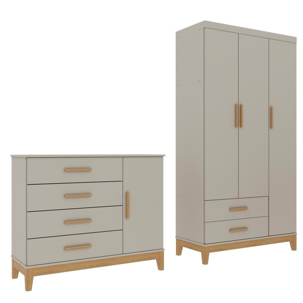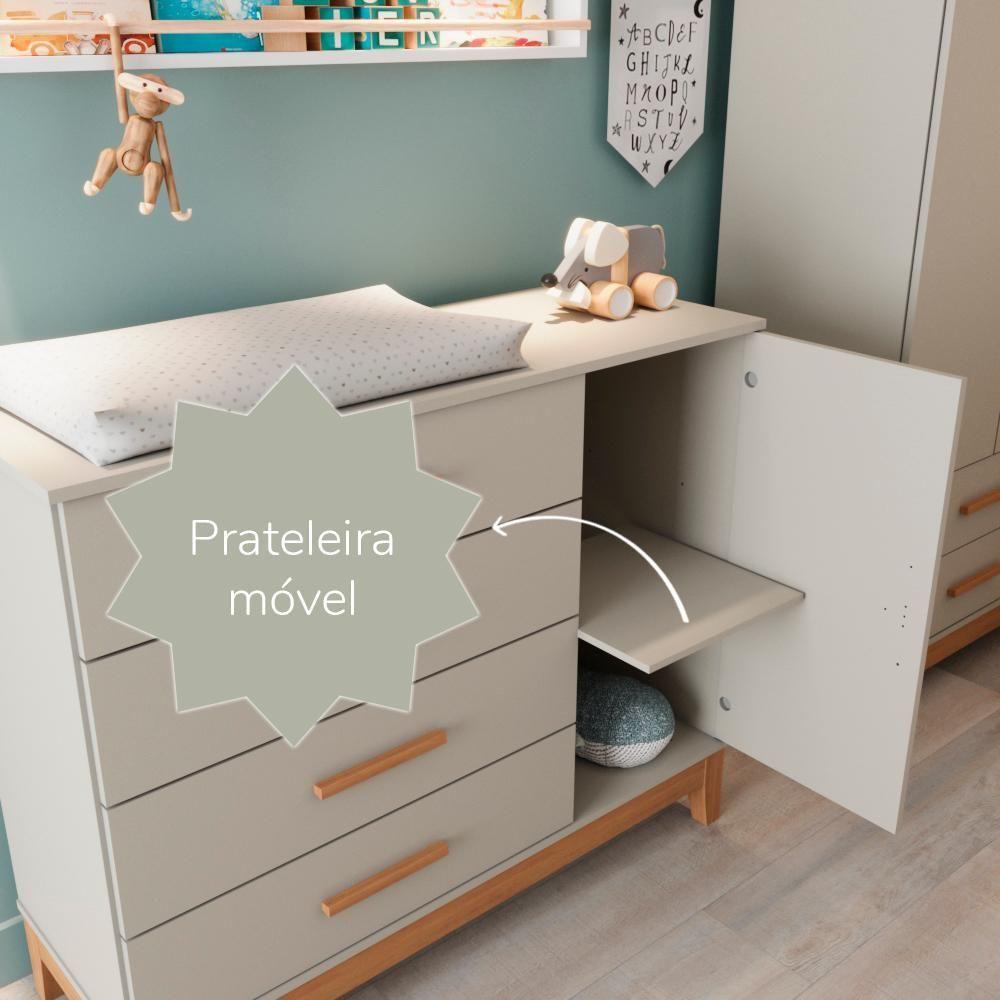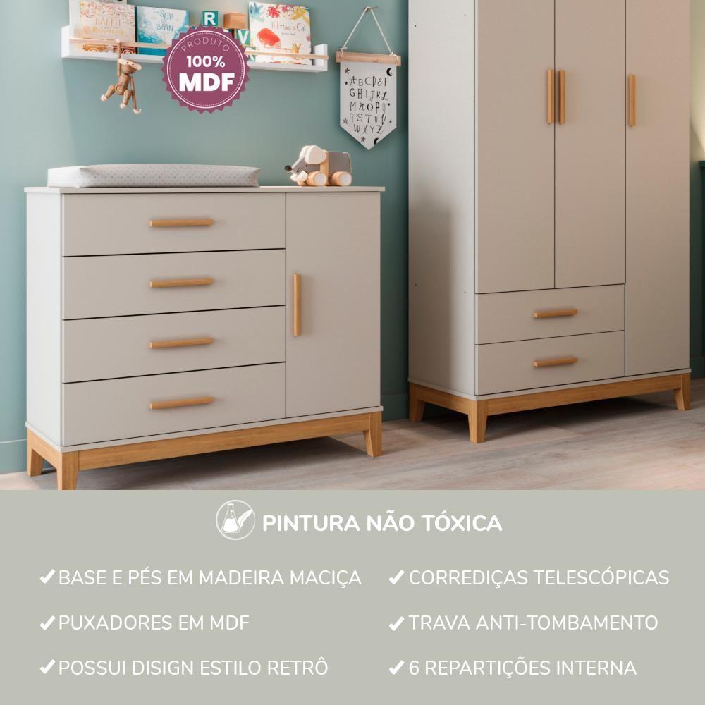 Quarto De Bebê Retrô Guarda Roupa 3 Portas Cômoda Com Porta Helen Off White Com Cinamomo Carolina Baby