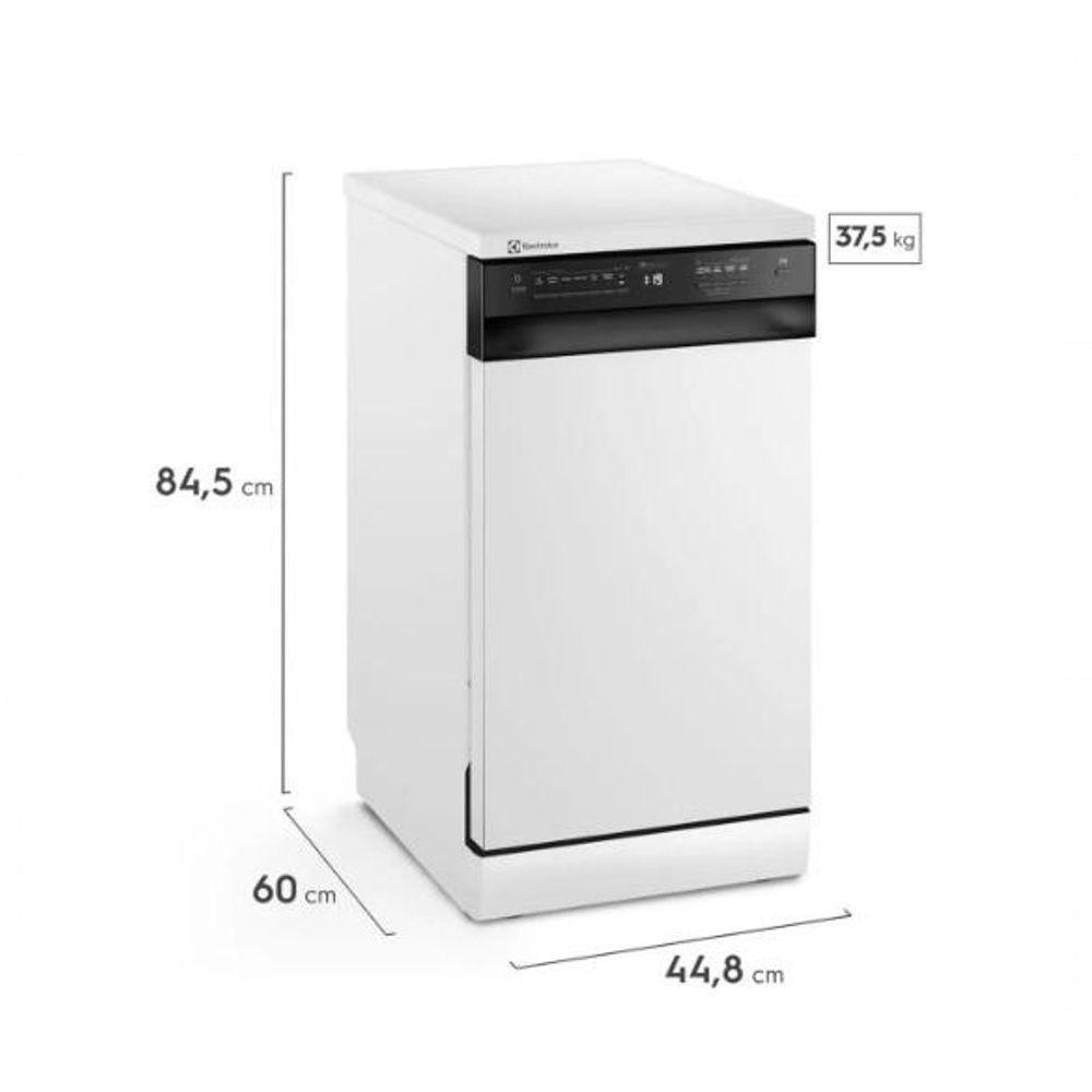 Lava-louça Electrolux 10 s Com Programa Lava E Seca 50' LB10E Branco 110VFicha Técnica Medidas do produto sem embalagem com embalagem 84,5 cm Altura 44,8 cm Largura 60 cm Profundidade 41 Kg Peso Especificações Capacidade 10 s Consumo de água (L/ciclo) 9 Cor Branca Temperatura da água 70°C Este Produto inclui Cesto para talheres Sim Diferenciais Pré lavagem Função Meia Carga Função Adiar início Painel Mecânico Programas Lava & Seca 50'; Programa Eco; Programa Adiar Início; Programa Delicado; Programa Express 30’. Quantidade de pulverizadores 2 Tampa com visor transparente Não Trava painel Sim Dispenser para sabão Sim Sensor de sujeira Não Função adia lavagem Sim Função ECO Sim Função pré-lavagem Sim Especificações técnicas Instalação Não Modelo LB10E Frequência 60 Hz Dimensões (AxLxP) 84,5cmx44,8cmx60cm Peso bruto 41 Kg Tensão 127/220V Capacidade 10 s Garantia do produto 1 ano EAN-13 7909569479865 (127V), 7909569479889 (220V) EAN 220v 7909569479889 Altura do produto embalado 64,5 cm Largura do produto embalado 49,5 cm Profundidade do produto embalado 87,1 cm Peso do produto embalado 37,5 Kg Esterilização / Higienizar Sim Dispenser para Líquido Secante Sim Silenciosa Sim Visualizador de Etapas de Lavagem Sim Terceiro Hack Não Profundidade: 60cm | Largura: 44,8 | Altura: 84,5 | annual_energy_consumption: . | batteries_required: Não | capacity: 10 | controls_type: Botão de apertar | external_testing_certification: LL10B-110 | included_components: Sistema de secagem | item_depth_width_height: 49,5 89 67,2 | item_weight: 41kg | manufacturer: Electrolux | model_number: LL10B | noise_level: . | number_of_programs: . | part_number: . | power_source_type: Energia elétrica | warranty_description: 01 ano (3 meses de garantia legal e mais 9 meses de garantia especial concedida pelo fabricante). | website__weight: 45kg | Principais Características do Produto 0: Lava e Seca | Principais Características do Produto 1: Eficiente | Principais Características do Produto 2: 10 s Cor: BRANCO Voltagem: 127V