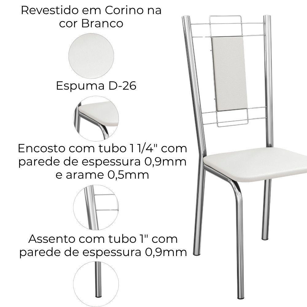 Kit 2 Cadeiras Cromada Sala Jantar 2c005cr Corino Kappesberg Branco
