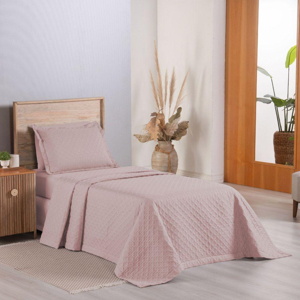 Kit Cobre Leito Colcha Casa Scarpa Atualle Solteiro Dupla Face Microfibra 2 Peças - Rosê
