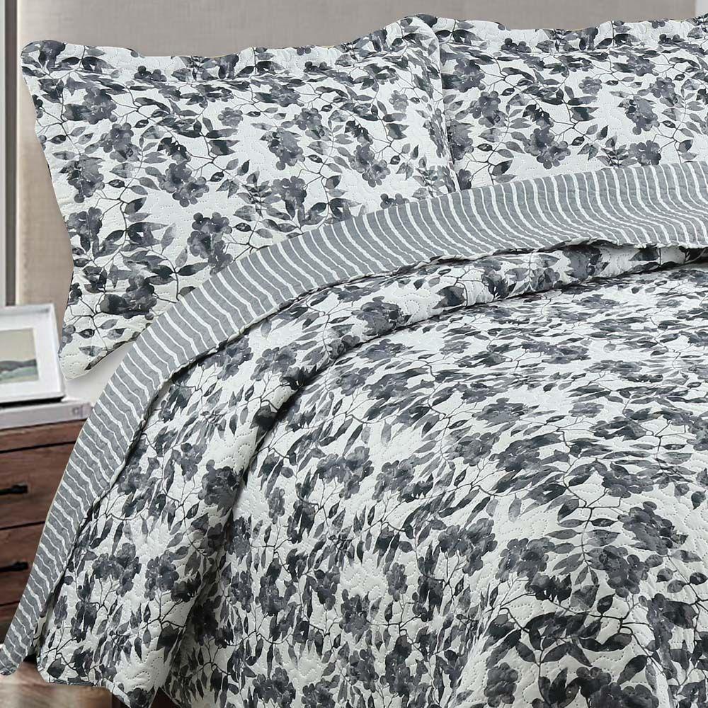 Kit Cobre Leito Colcha Mix King Estampado Dupla Face Floral 3 Peças - Amanda - Palha