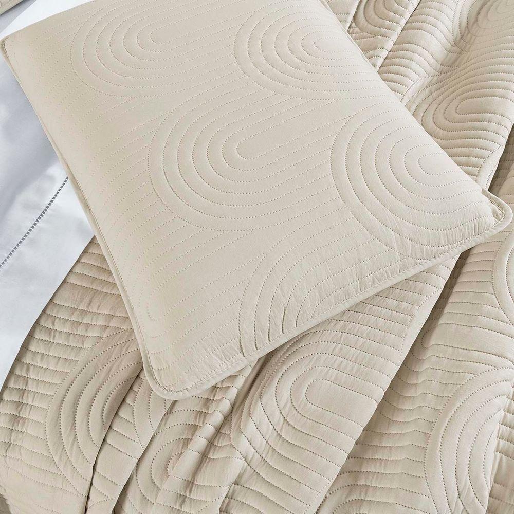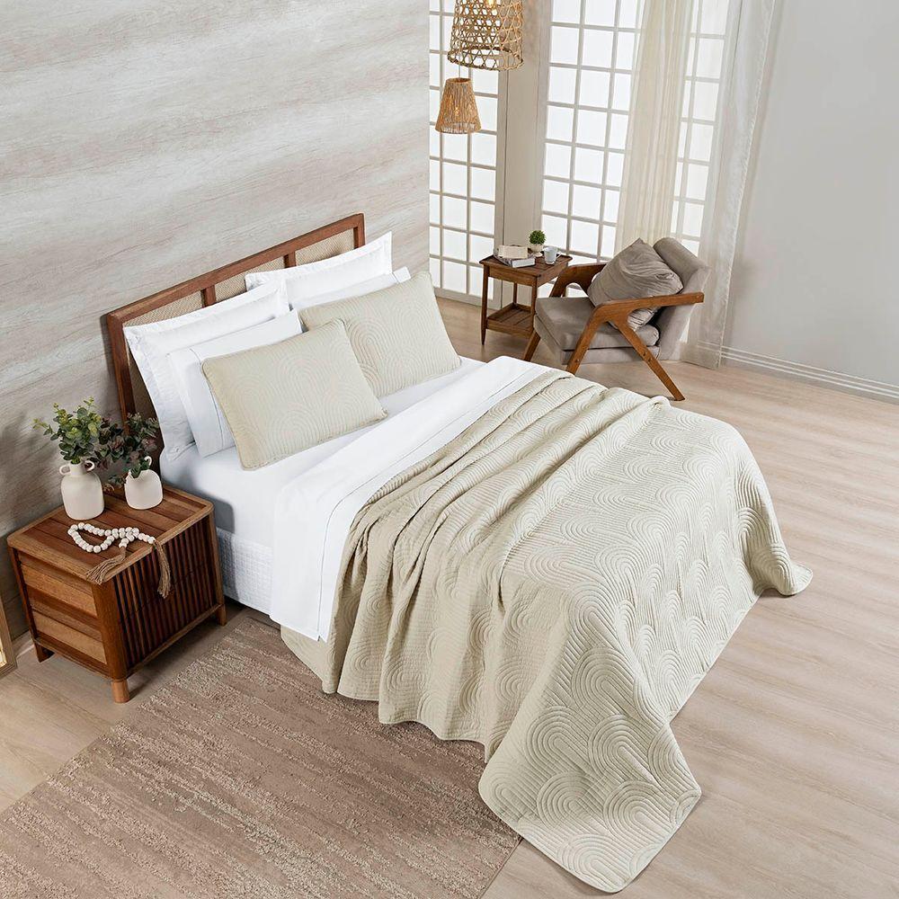 Kit Cobre Leito Colcha Arcos King Dupla Face Matelado 200 Fios 3 Peças Baunilha Palha