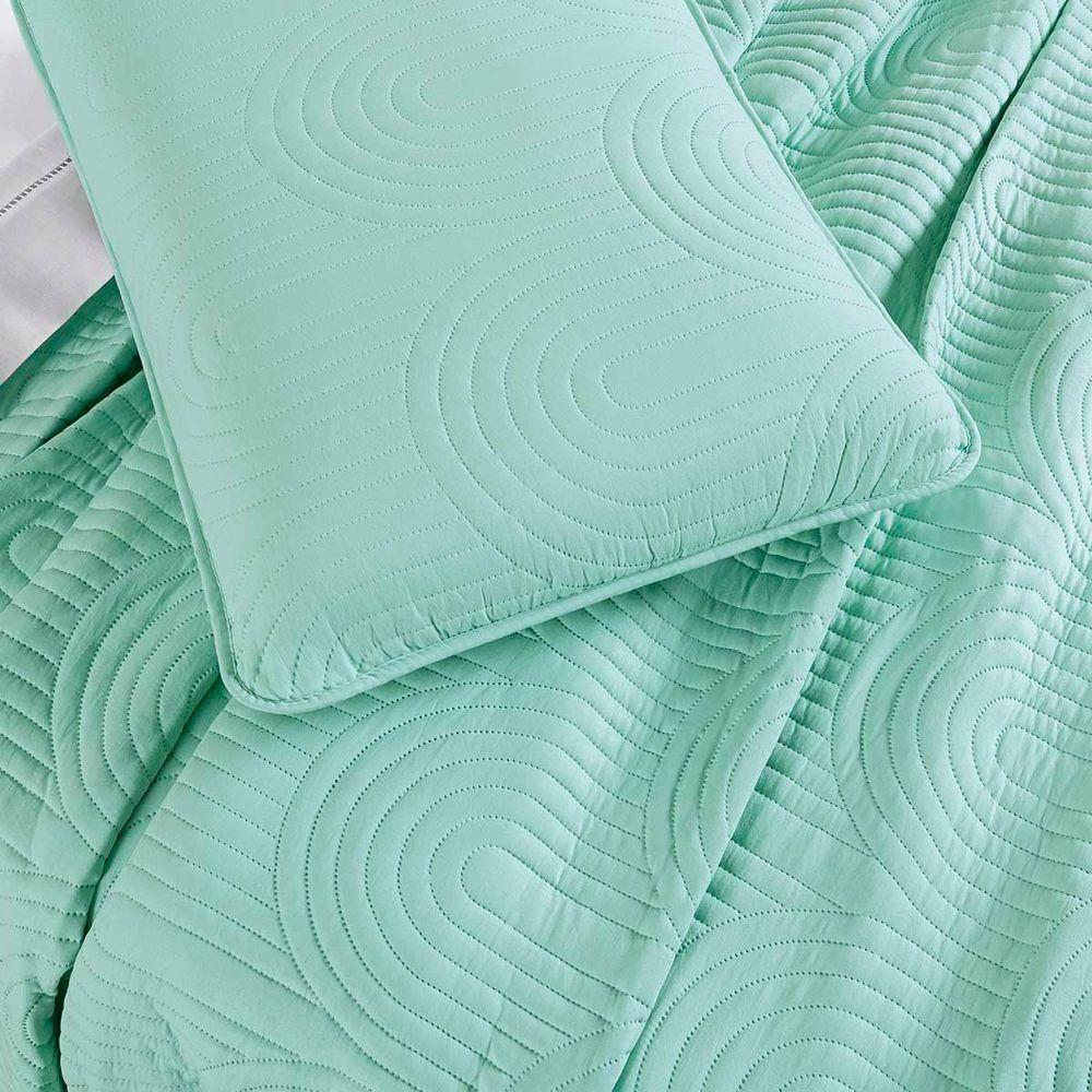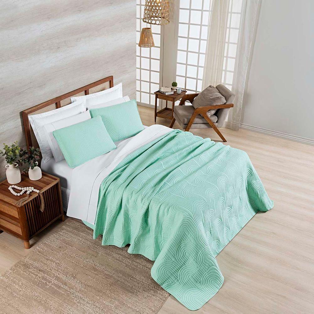 Kit Cobre Leito Colcha Arcos Queen Dupla Face Matelado 200 Fios 3 Peças Verde