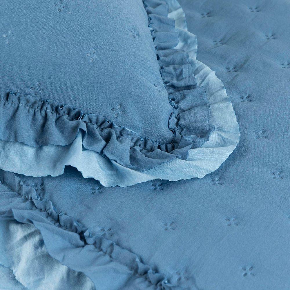Kit Cobre Leito Colcha Vitta Queen Matelado C/ Babadinhos 200 Fios 3 Peças Azul - 100% Poliéster
