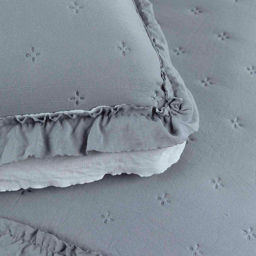 Kit Cobre Leito Colcha Vitta King Matelado C/ Babadinhos 200 Fios 3 Peças Cinza - 100% Poliéster