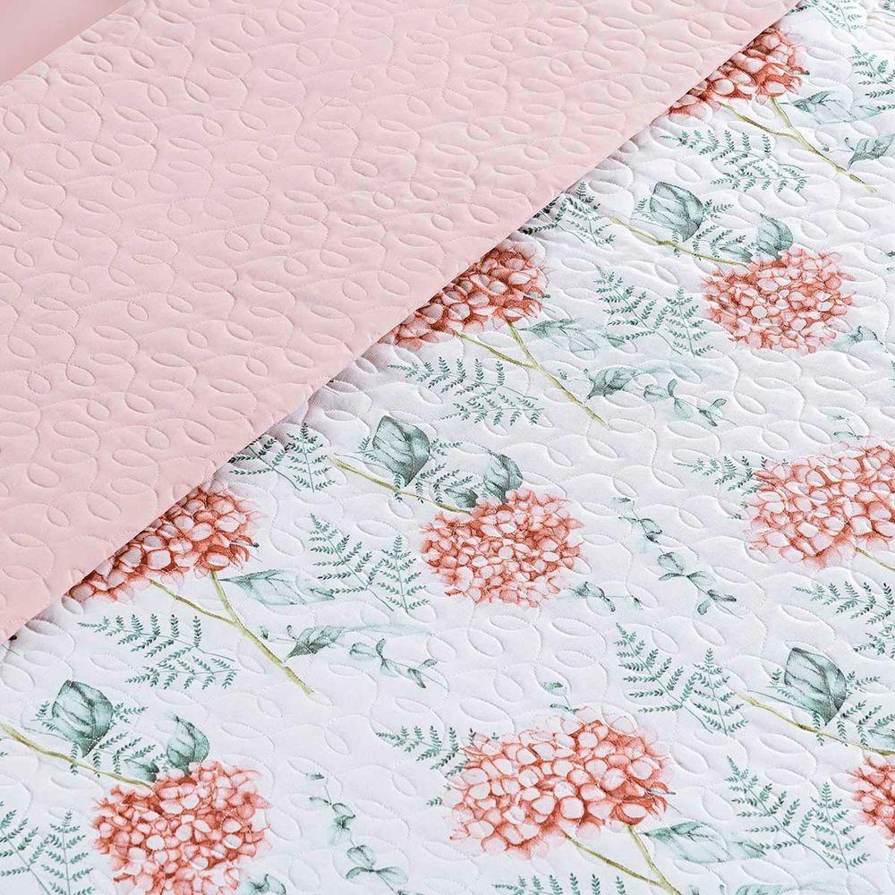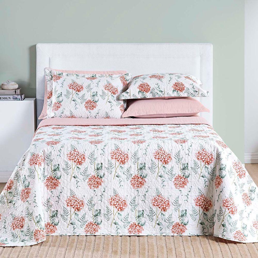 Kit Cobre Leito Colcha Maris Casal Padrão Estampado Dupla Face Percalle 200 Fios 3 Peças Hortênsia Salmão