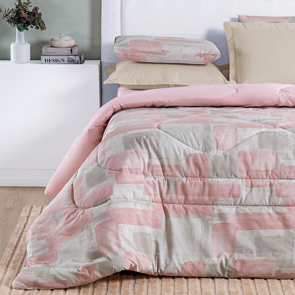 Edredom Cobertor Casa Scarpa Maris Super King Percalle 200 Fios Estampado Quadri Rosê