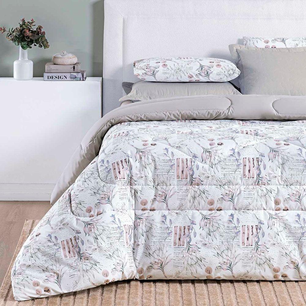 Edredom Cobertor Casa Scarpa Maris Super King Percalle 200 Fios Estampado Floral Protea CinzaTransforme suas noites de descanso com o Edredom Maris Dupla Face, que une praticidade e sofisticação. De um lado, a modernidade da cor lisa, do outro, estampas encantadoras que combinam com qualquer estilo de quarto, permitindo que você renove o visual da sua cama sempre que desejar.Confeccionado em Percalle 200 fios misto (80% Algodão e 20% Poliéster), oferece o toque macio e aconchegante do algodão aliado à durabilidade e resistência do poliéster, garantindo mais qualidade e vida útil ao produto.Benefícios e Características:- Dupla Face: duas opções em um só edredom – versatilidade na decoração.- Tecido Percalle 200 fios: mais suavidade e frescor para noites tranquilas.- Composição equilibrada: 80% algodão para conforto + 20% poliéster para resistência.- Estampas exclusivas: delicadas e harmônicas, que trazem charme e emoção para o ambiente.- Praticidade no dia a dia: fácil de lavar e conservar sempre bonito.Contêm na embalagem:01 Edredom dupla face 2,40m comprimento x 2,80m largura* os porta travesseiros NÃO acompanham o produto.Composição:Tecido Percalle 200 Fios - 80% Algodão / 20% PoliésterEnchimento: Manta 100% PoliésterAtenção: As cores do produto podem sofrer pequenas variações devido à configuração da tela do seu dispositivo.