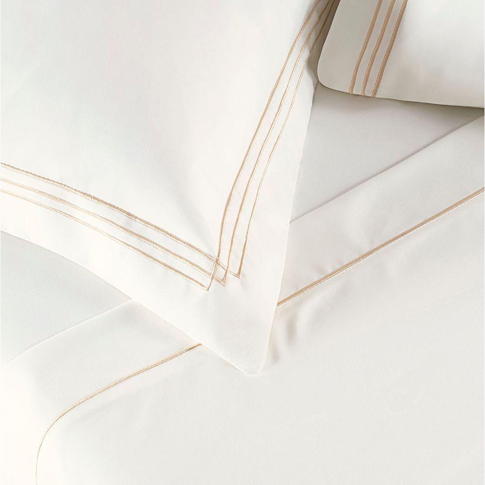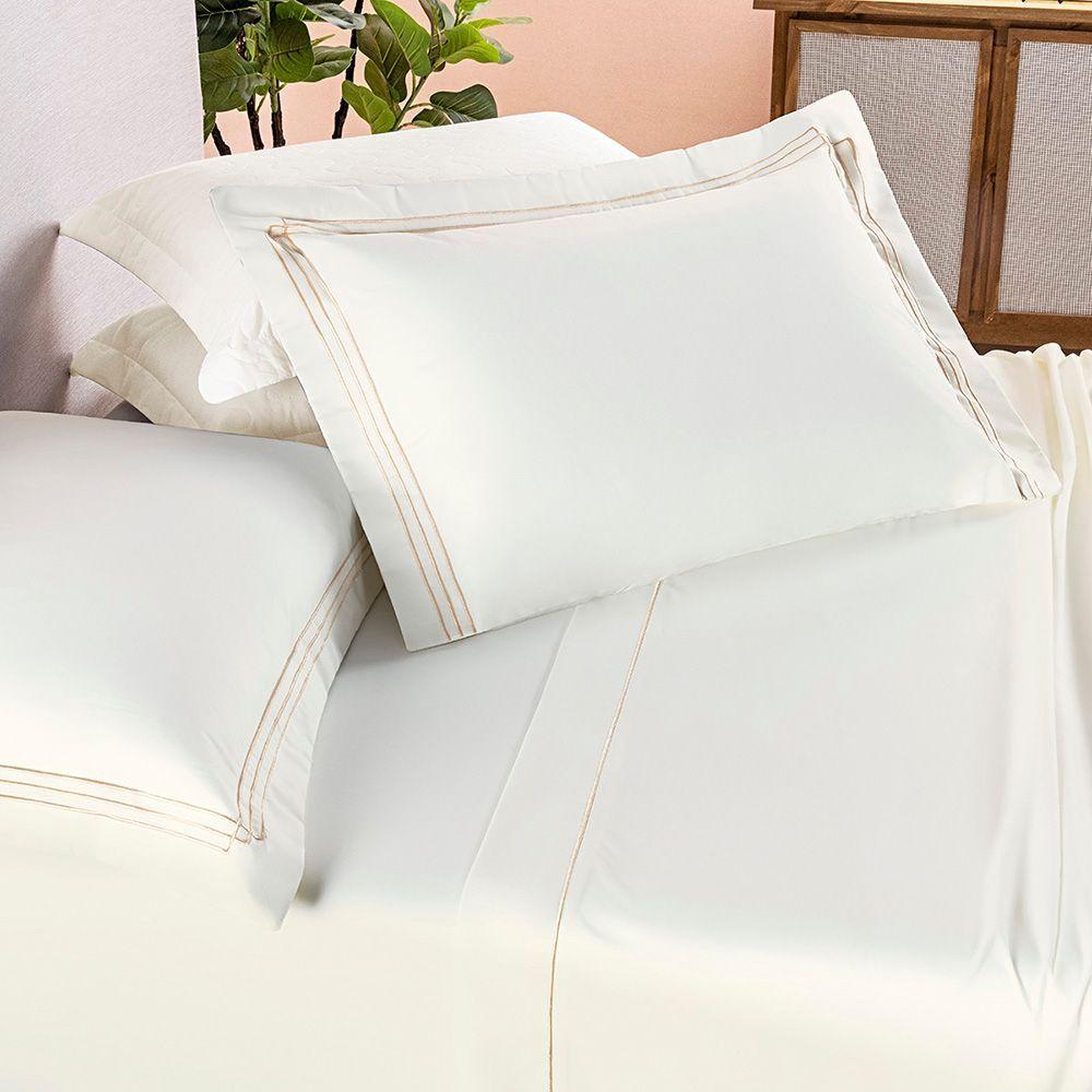 Jogo Cama Lençol Trivio Casal 400 Fios Bordado Fronhas Aba Americana 4 Peças Palha