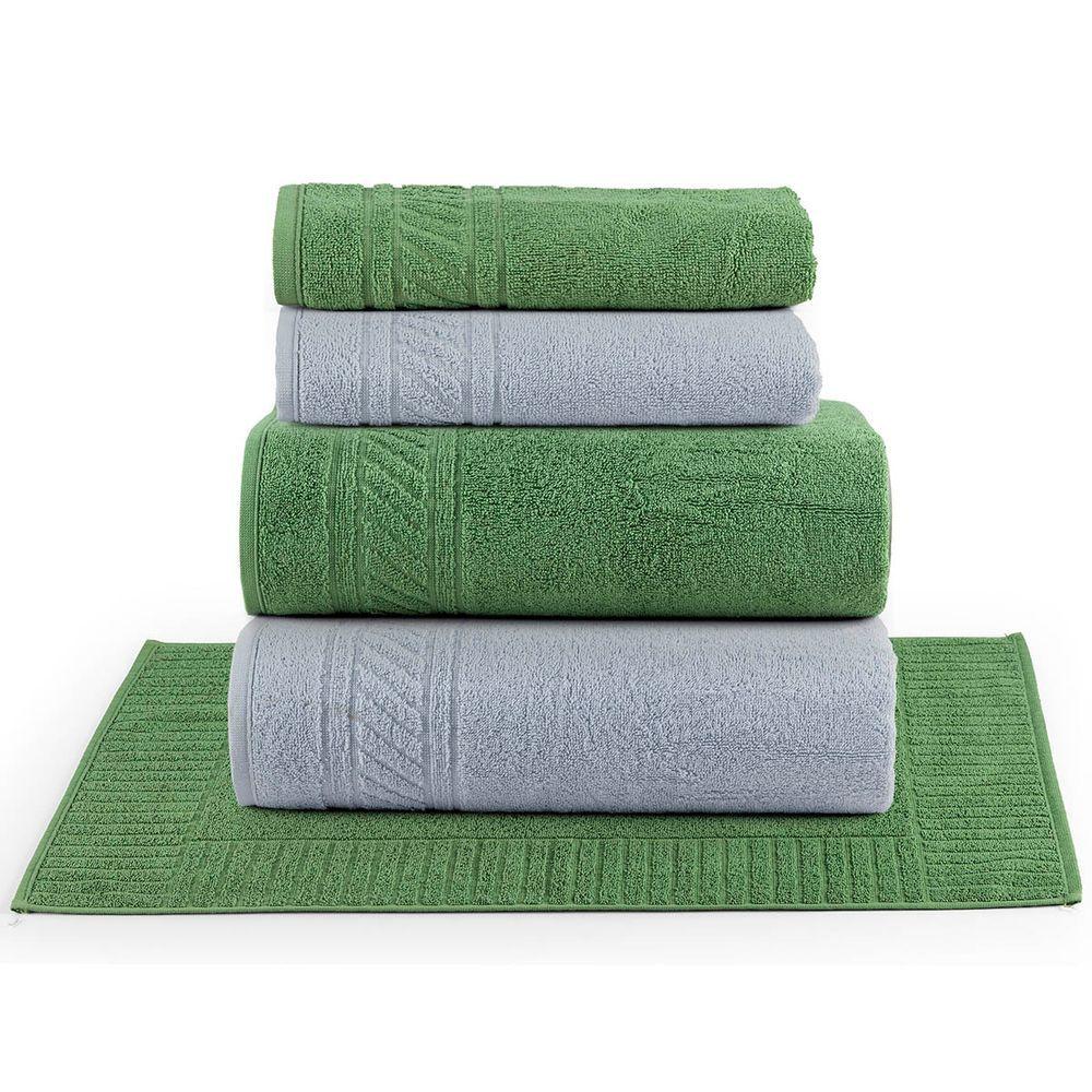 Jogo De Banho Lummi Toalhas Macias 100% Algodão Fio Penteado 5 Peças Verde E Cinza