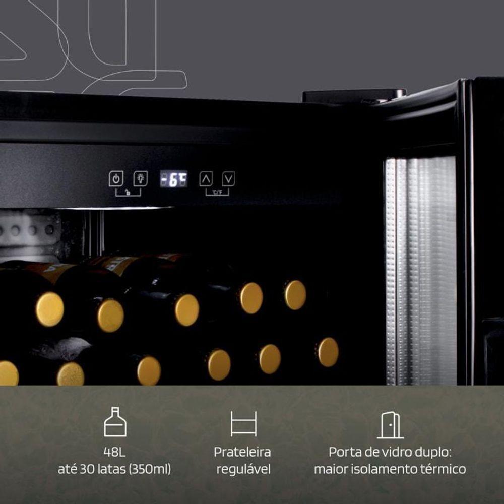 Cervejeira Suggar 48L Suggar 110VCervejeira Suggar 48L: O Toque de Estilo e Praticidade para Suas BebidasA Cervejeira Suggar 48L Preta com Porta de Vidro é a solução perfeita para quem deseja manter suas bebidas sempre geladas e à mão. Com um design elegante e compacto, este eletrodoméstico é ideal para áreas gourmet, varandas, churrasqueiras ou pequenos negócios. Descubra todos os benefícios que a Cervejeira Suggar pode oferecer para você!Características PrincipaisA Cervejeira Suggar 48L é projetada para atender as suas necessidades, proporcionando eficiência e praticidade. Veja suas características:Capacidade de 48 Litros: Armazena até 30 latas de 350ml, perfeita para reuniões e festas.Porta de Vidro Duplo: Com isolamento térmico, garante a conservação das suas bebidas por mais tempo.Controle Eletrônico de Temperatura: Ajuste a temperatura entre -6°C e 10°C com facilidade, utilizando o visor LED.Bloqueio de Temperatura: Evita alterações acidentais, garantindo que suas bebidas permaneçam sempre na temperatura ideal.Baixo Consumo de Energia: Com apenas 0,09 kWh/dia, a cervejeira é econômica e ecologicamente correta.Iluminação Interna em LED: Valoriza a apresentação das suas bebidas, tornando-as ainda mais atraentes.Prateleiras Reguláveis: Adaptáveis para diferentes tamanhos de embalagens, oferecendo flexibilidade no armazenamento.Gás Refrigerante R600a: Ecológico e eficiente, garantindo um desempenho superior.Potência: 90W, ideal para um funcionamento eficaz.Dimensões: 51x48x43 cm, com peso de 24,3 kg, perfeita para qualquer espaço.Atributos do ProdutoConheça os atributos que fazem da Cervejeira Suggar 48L uma escolha inteligente:Marca: SuggarCor: PretoCapacidade: 48 LitrosMarca: Suggar Quantidade de Portas: 1 Porta Modelo: Vertical Degelo: Manual Voltagem: 127VPor Que Escolher a Cervejeira Suggar 48L?Além de seu design sofisticado, a Cervejeira Suggar 48L é uma combinação perfeita de funcionalidade e estética. Seu baixo consumo de energia e a eficiência do gás refrigerante R600a fazem dela uma escolha sustentável, enquanto a iluminação interna em LED destaca suas bebidas, tornando-a uma peça central em qualquer ambiente.Adquira Já a Sua!Não perca a oportunidade de ter a Cervejeira Suggar 48L em sua casa ou negócio. Mantenha suas bebidas sempre geladas e impressione seus convidados com estilo e praticidade. Faça seu pedido agora e desfrute de momentos especiais com bebidas na temperatura ideal!