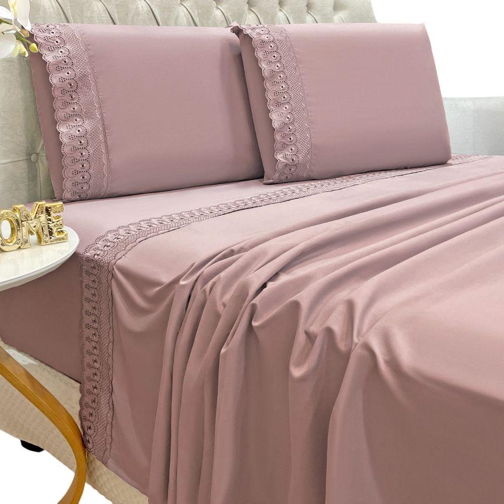 Jogo Lençol Queen Grace Bordado 4pç 100% Poliéster - Malva