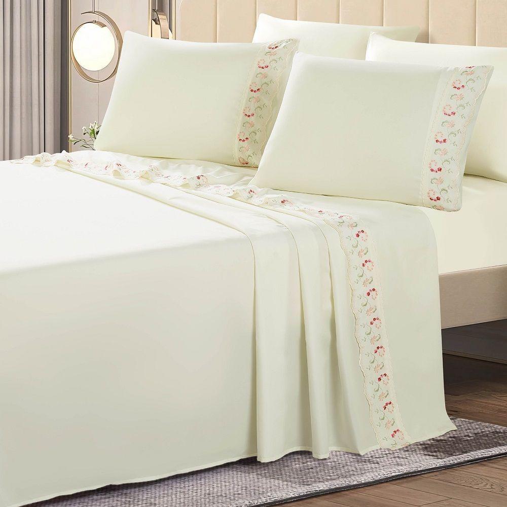 Jogo Lençol Casal Floral Bordado 4pç 100% Poliéster - Ros