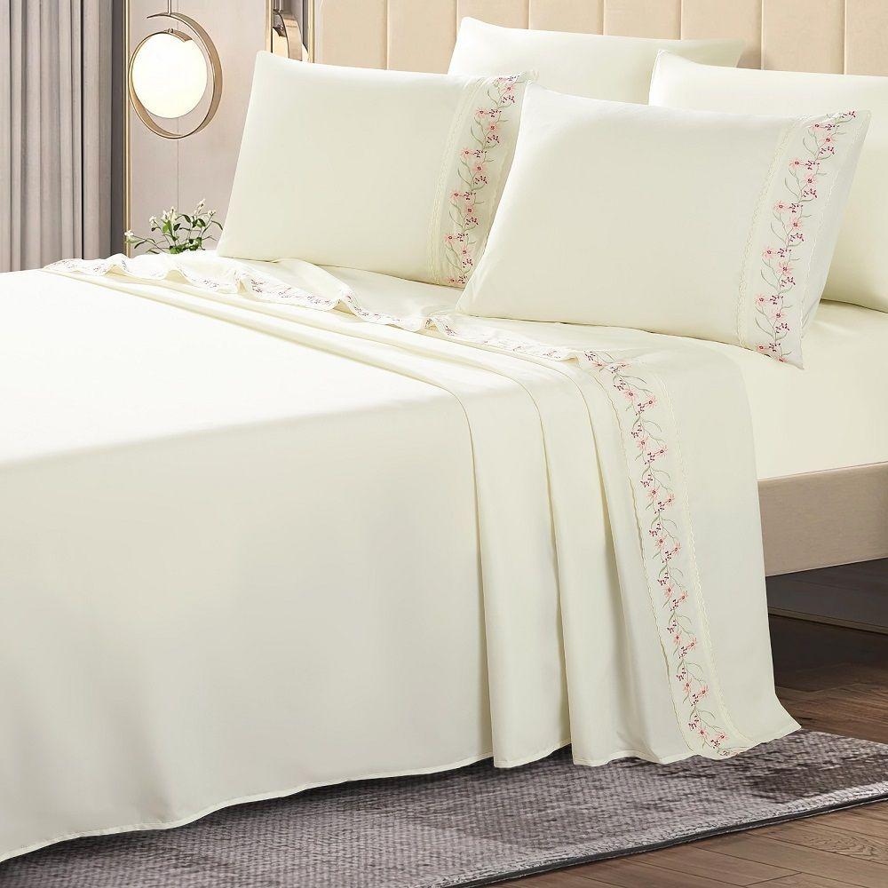 Jogo Lençol Casal Floral Bordado 4pç 100% Poliéster - Pin