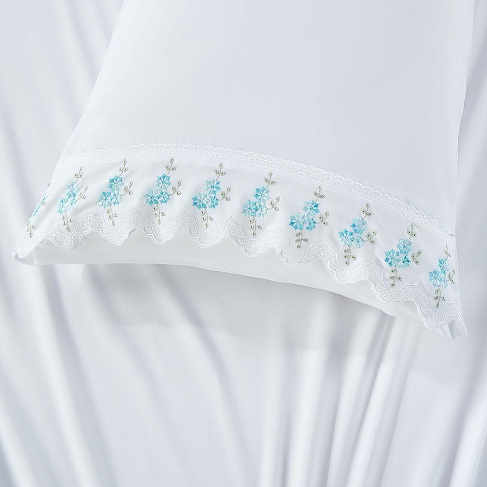 Jogo Lençol Casal Floral Bordado 4pç 100% Poliéster - Azu
