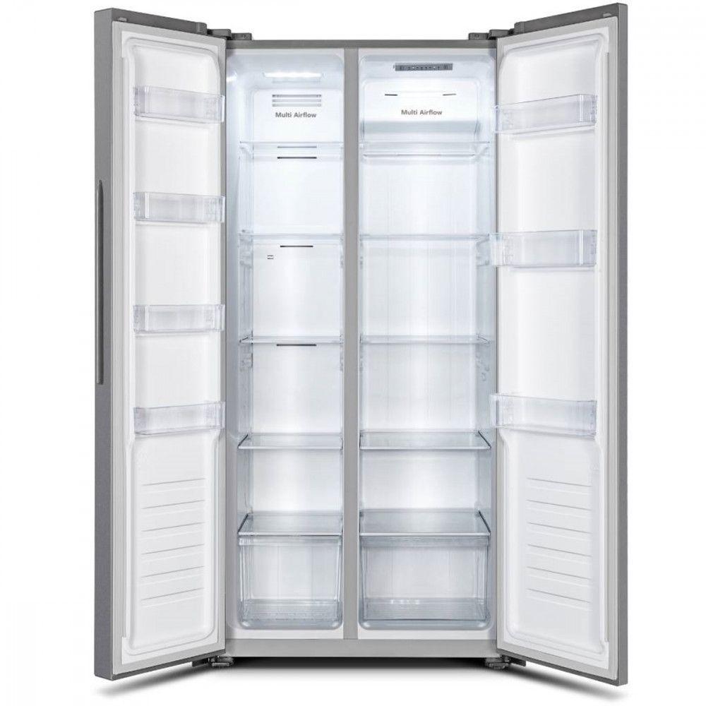 Geladeira Hisense 428l Total No Frost Super Freeze Inox 220VNossa missao e proporcionar uma experiencia premium aos nossos clientes, superando expectativas com cada produto que entregamos.Com tecnologia de ponta, desempenho superior, design elegante e sofisticado, confiabilidade duradoura e parcerias com os varejistas mais confiaveis do setor, nao abrimos mao de nada.Saia do obvio. Escolha Hisense, onde inovacao se encontra com valor.[Design Perfeitamente Harmonioso]Com design de profundidade alinhada, 833mm de largura e portas planas e elegantes, integra-se perfeitamente aos moveis da sua cozinha, criando uma aparencia harmoniosa que valoriza todo o ambiente.[Puxador Embutido em Metal]Diferente do visual convencional, esta linha apresenta um novo design de puxador embutido em metal, oferecendo mais praticidade e elegancia no uso diario.[Tecnologia Total No Frost]Com a tecnologia Total No Frost, nao ha acumulo de gelo no interior do aparelho, eliminando a necessidade de descongelamento e mantendo seus alimentos frescos e nutritivos por muito mais tempo.[Sistema de Resfriamento por Distribuicao Uniforme]O sistema Surround Cooling resfria o interior de forma uniforme, de canto a canto. O ar frio e distribuido por multiplas saidas em todos os niveis de prateleira, garantindo temperatura constante e preservacao dos alimentos por mais tempo.[Controle Preciso de Temperatura]Para manter os alimentos frescos por mais tempo, a tecnologia de resfriamento com controle preciso minimiza flutuacoes de temperatura, detectando alteracoes com frequencia e ajustando o funcionamento do compressor de forma eficiente.[Funcao Super Freeze]A funcao Super Freeze reduz rapidamente a temperatura do freezer, congelando os alimentos muito mais rapido. Isso ajuda a preservar vitaminas e nutrientes, mantendo os alimentos tao frescos quanto no momento da compra, por muito mais tempo.[Super Cooling]Com a funcao Super Cooling, seus alimentos sao resfriados com desempenho maximo, economizando tempo para atingir temperaturas mais baixas rapidamente.[Capacidade Ampla de 428L]Com 428 litros de capacidade, oferece amplo espaco no refrigerador e no freezer para armazenar alimentos de diferentes tamanhos e formatos com total praticidade.Caracteristicas do produto:Marca: HISENSE GORENJEModelo: Total No FrostMaterial: Metal /PLASTICO (HIPS)Capacidade: 428LFreezer: 164LGeladeira: 264LFrequencia: 60 HzTipo: RefrigeradorDimensoes:Altura: 177,77 cmLargura: 83,2 cmProfundidade: 61 cmPeso: 72 KgGarantia: 12 meses do produto e 10 anos no compressor.