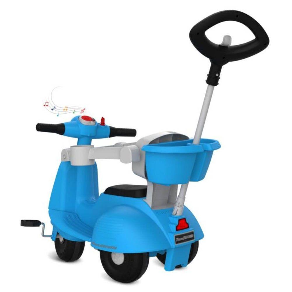Triciclo Banderetta 1245 Bandeirante AzulO Triciclo Banderetta Passeio Pedal une charme retro e diversao, permitindo que o adulto conduza com a haste direcionavel no modo passeio ou que a crianca pedale livremente no modo pedal. A transicao entre as funcoes e facil: basta travar o dispositivo roda livre e remover a haste, o cercado de protecao e o apoio para os pes.Diferencial !!Assento ergonomicoAssento baixo, com altura ideal para subir e descer com facilidade e segurancaBau sob o assentoCacamba traseira removivelGuidao com lente, luz de LED e chip sonoroCercado de protecao removivel com sistema de abertura lateralSuporte para garrafa d'agua, mamadeira ou squeeze (no cercado)Haste removivel com suporte para bolsa/ sacolaApoios removiveis mantem os pes da crianca apoiados confortavelmenteRodas com anel de protecaoCaracteristicas:TriciculoMarca: BandeirantesModelo: BanderettaPeso suportado: Ate 30 kgIdade Sugerida: Mais de 12 mesesAltura maxima sugerida: 1,12 mDimensoes:Altura: 41 cmLargura: 95 cmProfundidade: 97,8 cmPeso: 5,6 kgGarantia do Fornecedor: 03 meses (Contra defeito de fabricacao a contar do momento da emissao da Nota Fiscal).