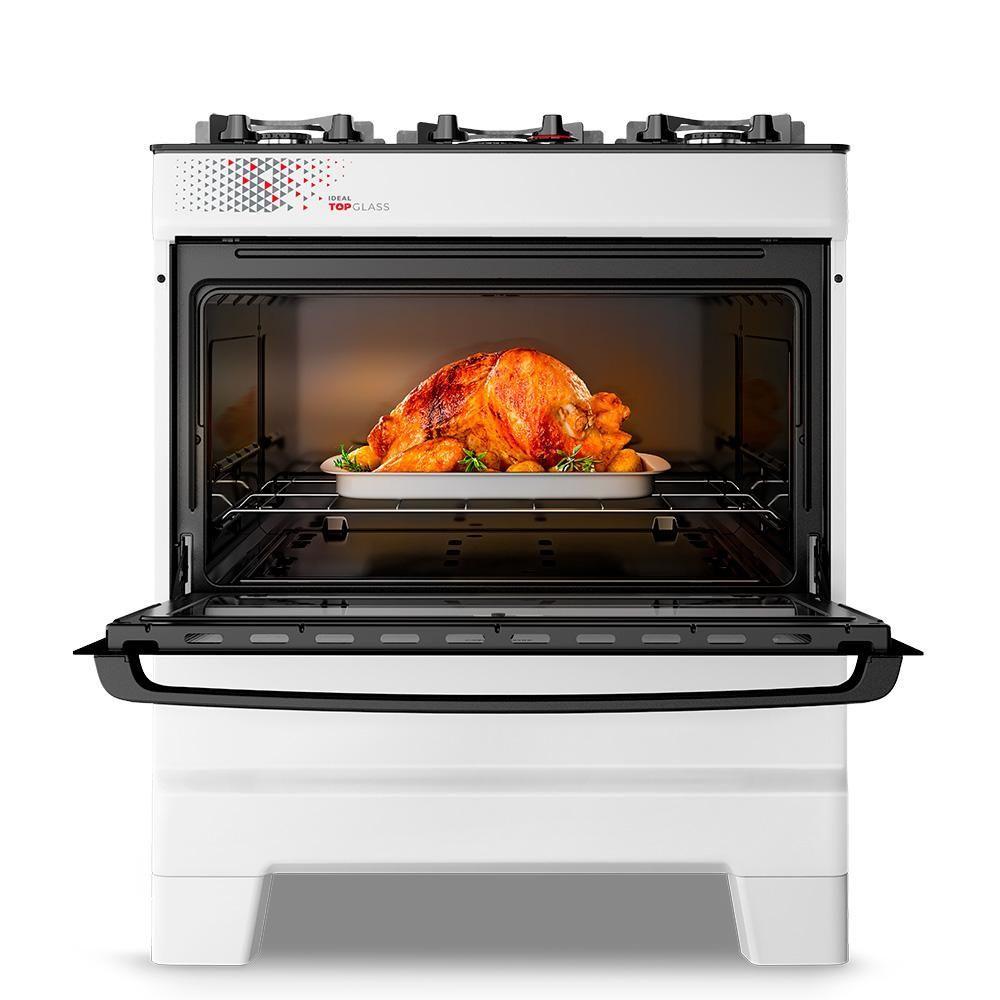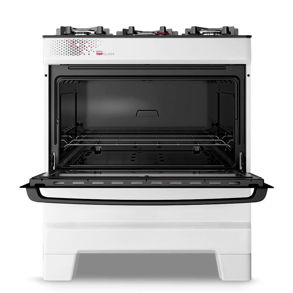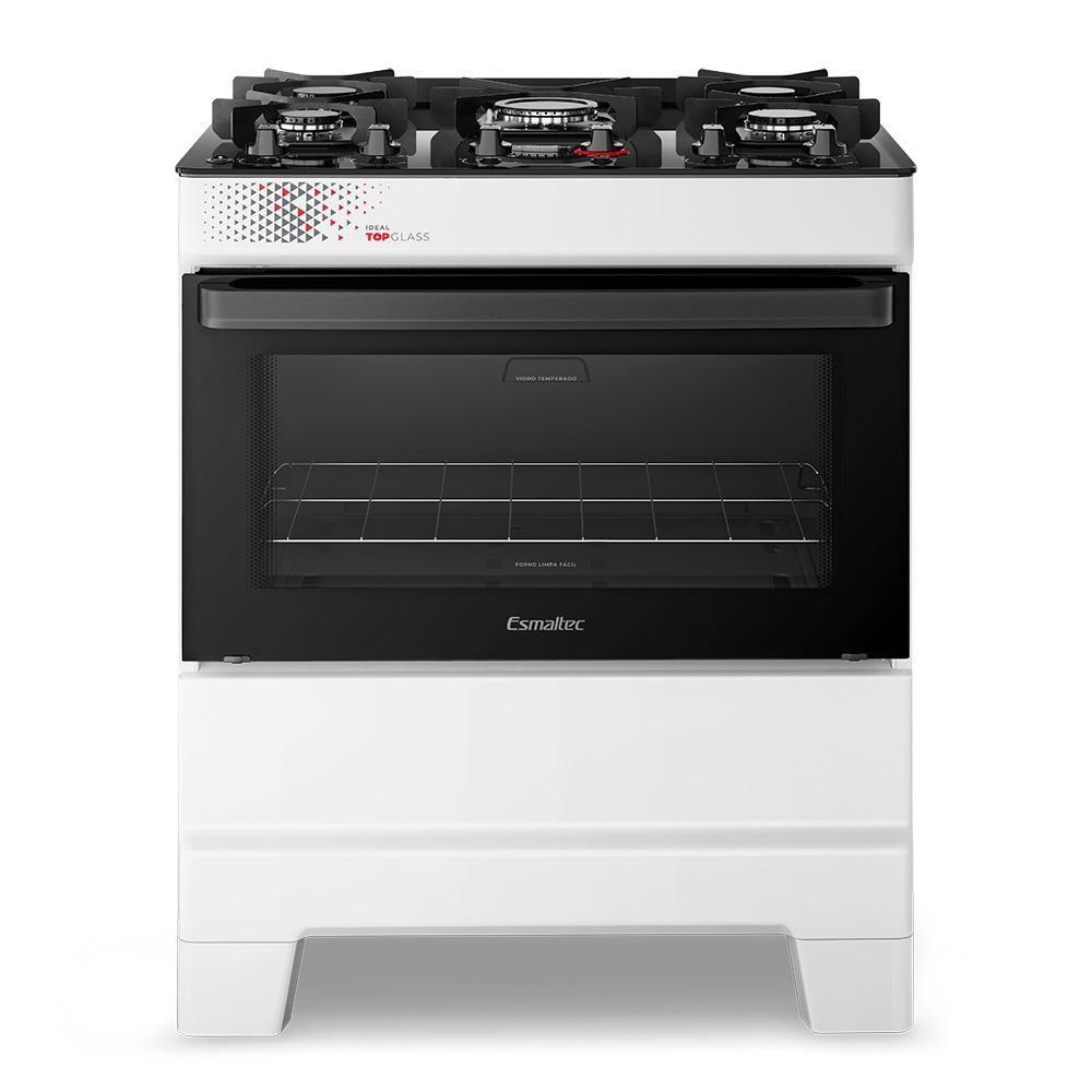 Fogão A Gás Mesa De Vidro Forno 84l Esmaltec Ideal Top Glass Branco 5 Bocas BivoltO que você precisa saber sobre este produtoAcendimento automático: mais agilidade no preparoMesa de vidro temperado: acabamento sofisticado, resistente e fácil de limparTrempes individuais com 6 apoios: firmeza e estabilidade para todos os tipos de panelaForno Limpa Fácil com 84 litros de capacidade: mais espaço e eficiência para grandes receitasPorta do forno em vidro total com vidro interno removível: limpeza facilitada e visual modernoPuxador ergonômico: conforto no manuseio com mais durabilidadePés altos e retos com encaixe fácil: praticidade, firmeza e fácil limpeza por baixo do fogãoDescriçãoO Fogão 5 Bocas Esmaltec Ideal Top Glass a Gás com Mesa de Vidro Branco é o modelo ideal para quem cozinha para muitos, mas não abre mão de beleza, funcionalidade e organização na cozinha. Sua mesa de vidro temperado, além de resistente, tem acabamento brilhante e limpo, valorizando qualquer ambiente.As trempes individuais com 6 apoios garantem estabilidade superior para diferentes tamanhos de panela — da frigideira ao caldeirão. Com acendimento automático, você tem mais agilidade e segurança no uso diário.O forno com 84 litros é ideal para grandes preparos. Possui porta em vidro total, que permite acompanhar o assado sem abrir o forno, além de vidro interno removível e prateleira ajustável, que facilitam a limpeza e a organização interna.O fogão ainda traz puxador ergonômico, botões removíveis e pés altos e retos com encaixe fácil, oferecendo mais conforto e praticidade na rotina.O Esmaltec Ideal Top Glass 5 bocas branco a gás combina robustez, sofisticação e alto desempenho em um único produto.Isso é valor. Isso é Esmaltec.Mesa: Vidro | Acendimento: Automático | Forno: Limpa Fácil | Quantidade de Queimadores: 5 | Cor: Branco