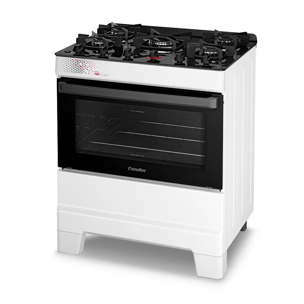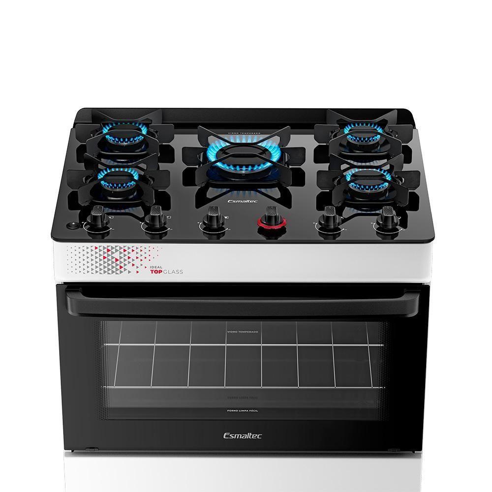 Fogão A Gás Mesa De Vidro Forno 84L Esmaltec Ideal Top Glass Branco 5 Bocas Bivolt