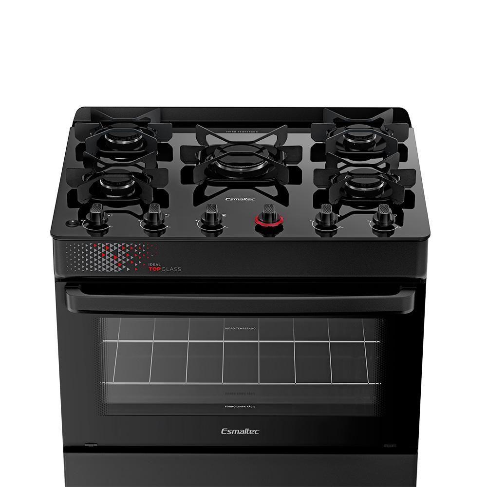 Fogão A Gás Mesa De Vidro Forno 84L Esmaltec Ideal Top Glass Preto 5 Bocas Bivolt