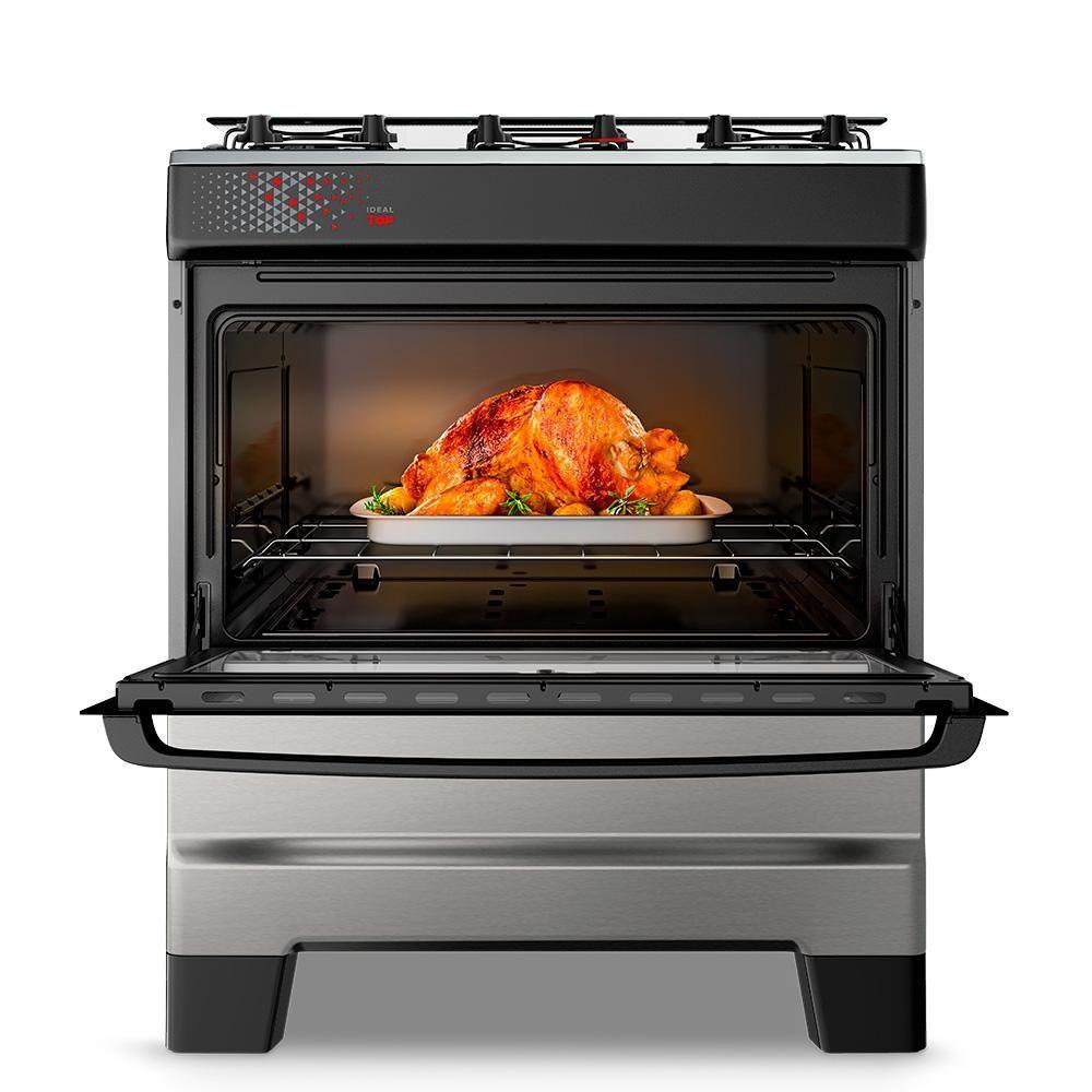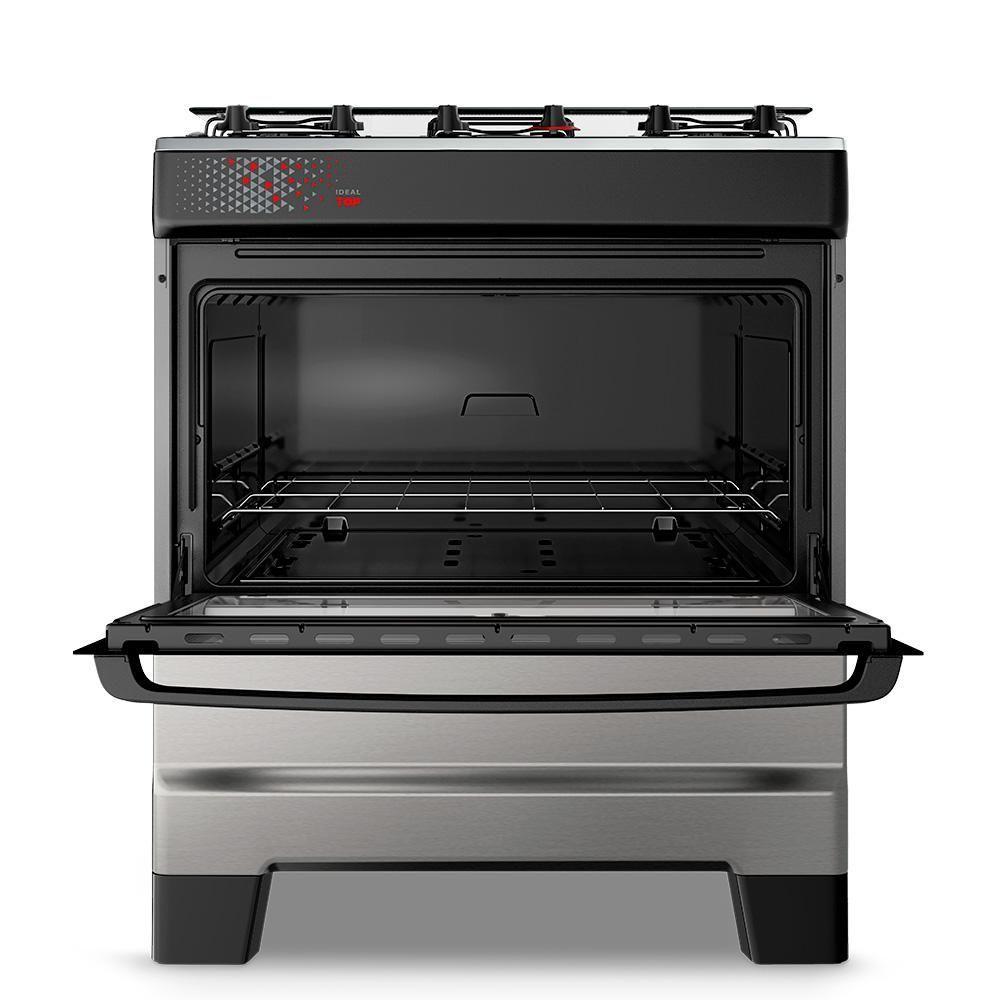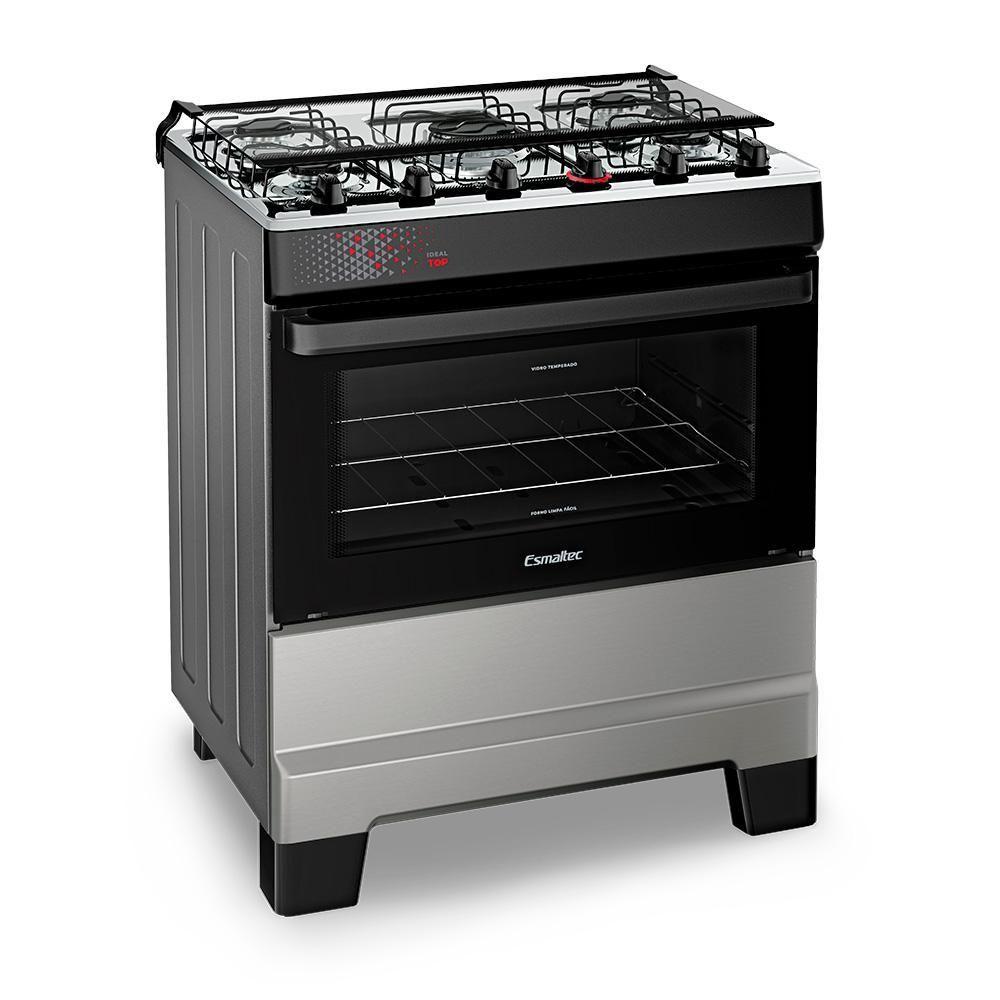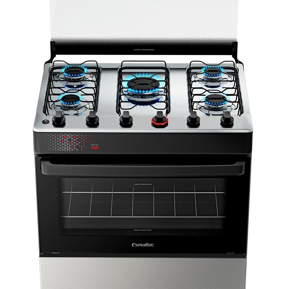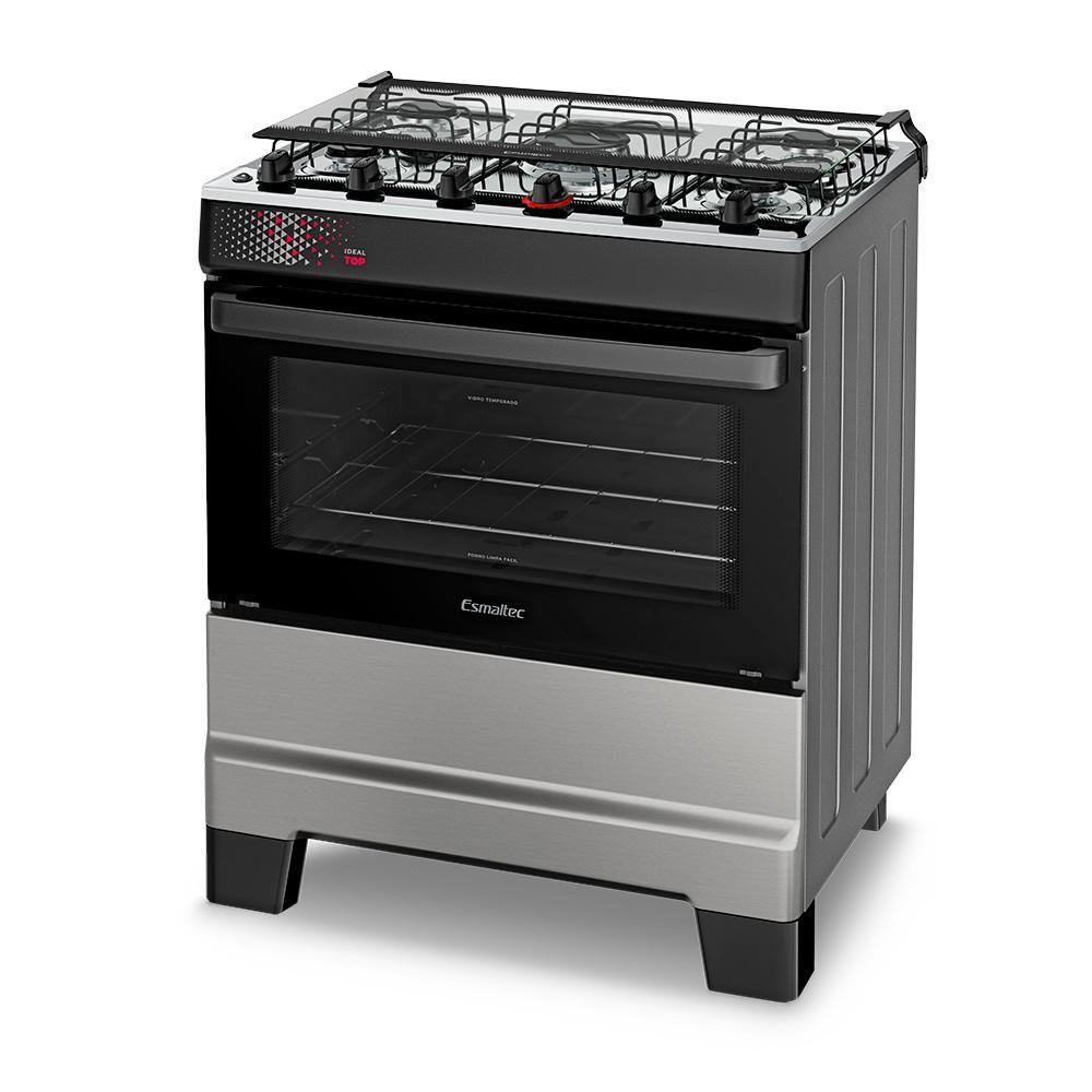 Fogão A Gás Mesa Inox Tampa De Vidro Forno 84L Esmaltec Ideal Top Inox 5 Bocas BivoltAcendimento automático: mais agilidade no preparo.Mesa inox com tampão de vidro temperado: resistência e acabamento elegante.Trempes duplas com mais apoios: estabilidade reforçada para as panelas. Forno Limpa Fácil com 84 litros de capacidade: mais espaço para grandes receitas.Porta do forno em vidro total com vidro interno removível: praticidade na limpeza.Puxador e botões ergonômicos: conforto no uso e manutenção simplificada. Pés altos e retos com encaixe fácil: segurança e facilidade na movimentação.Acabamento inox: visual moderno e versátil para sua cozinha.O Fogão 5 Bocas Esmaltec Ideal Top a Gás com Mesa Inox Cor Inox é ideal para quem precisa de mais espaço na cozinha e valoriza um produto com visual moderno e acabamento resistente. Sua mesa em aço inox com tampão de vidro temperado combina sofisticação com praticidade, facilitando a limpeza e protegendo o fogão no uso diário.Com acendimento automático, o uso é mais prático e seguro.As trempes duplas com mais apoios proporcionam estabilidade para panelas de todos os tamanhos.O forno com 84 litros de capacidade conta com porta em vidro total, vidro interno removível e prateleira ajustável, entregando versatilidade para receitas maiores e muito mais praticidade na hora de limpar.Pensado para o uso constante, o modelo traz ainda puxador ergonômico, botões removíveis e pés altos e retos com encaixe fácil, garantindo funcionalidade e segurança no dia a dia.O Esmaltec Ideal Top 5 bocas inox a gás entrega desempenho, durabilidade e um visual que combina com qualquer estilo de cozinha.Isso é valor.Isso é Esmaltec.Quantidade de Bocas: 5 | Produto: Fogão | Alimentação: A gás | Mesa: Aço Inox | Acendimento automático: Sim | Tipo: De piso | Voltagem: Bivolt | Cor: INOX