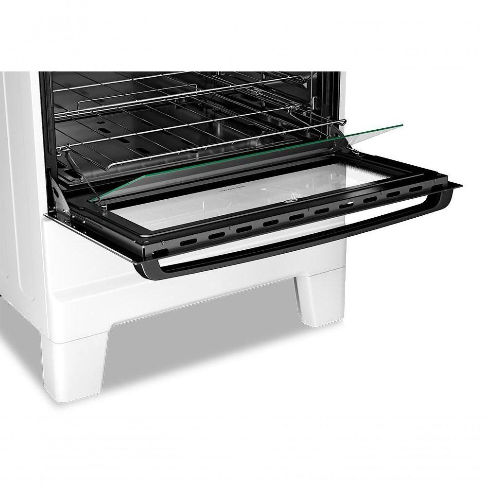 Fogão A Gás Mesa Inox Tampa De Vidro Forno 84L Esmaltec Ideal Master Branco 5 Bocas Bivolt