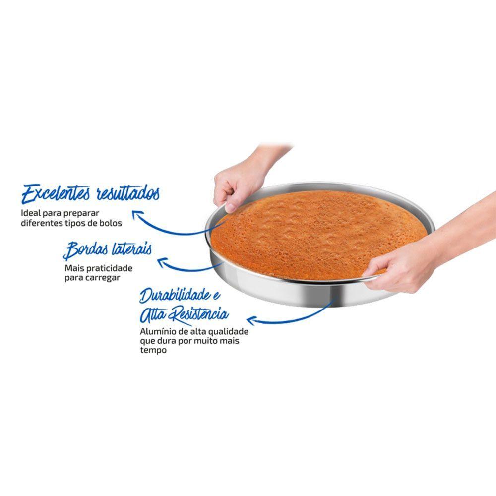 Forma Redonda Rochedo Bolo Perfeito 30cm Polida PolidaA vida tem que ser sempre muito mais doce e para ajudar seu dia a dia na cozinha para preparar receitas sempre muito saborosas e de dar agua na boca voce pode contar com a nova linha de formas Rochedo Bolo Perfeito. Com desempenho e tecnologia ideal para deixar suas receitas doces sempre deliciosas, as formas da Linha Bolo Perfeito contam com diferenciais para facilitar em todos os momentos do preparo. Confira abaixo os destaques da Forma Redonda de 30 cm Rochedo Bolo Perfeito Polida: • Durabilidade e Alta Resistencia: assadeiras de aluminio que duram por muito mais tempo mesmo com a utilizacao constante na cozinha. • Bordas laterais: possibilitam mais facilitada na hora de manusear a assadeira. • Excelentes resultados: cozimento rapido e uniforme ideal para preparar diferentes tipos de receitas. Formas e assadeiras confeccionadas com aluminio resistente, diferente no visual e no desempenho de verdade tem que ser Rochedo, marca especialista em produtos de cozinha!Especificacao tecnica: Modelo: Bolo Perfeito. Cor: Polida. Tipo de material: Aluminio. Conteudo da embalagem: 1 forma 30cm.