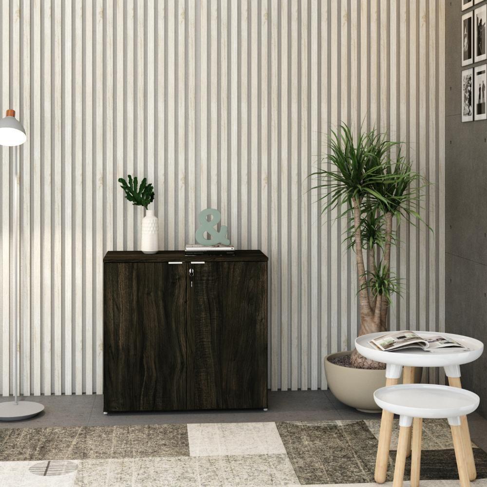 Armário Baixo Com 02 Portas 75x80x42cm Wlab80 Carvalho Dark Branco