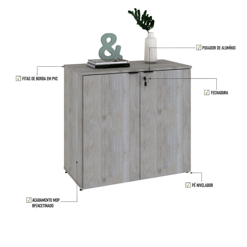 Armário Baixo Com 02 Portas 75x80x42cm Wlab80 Snow Preto