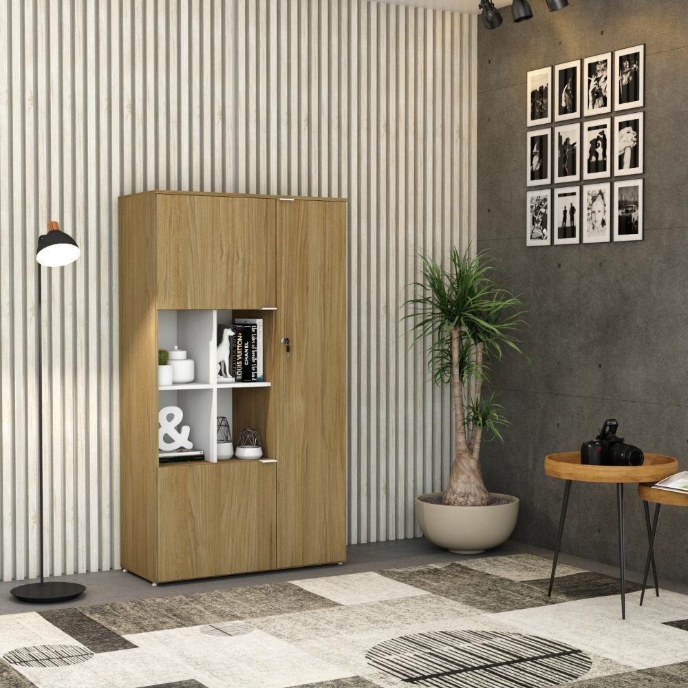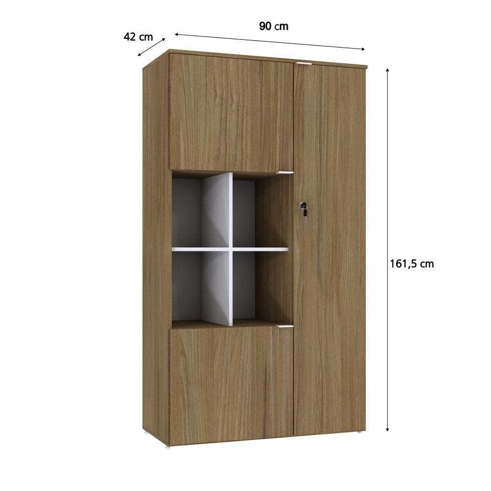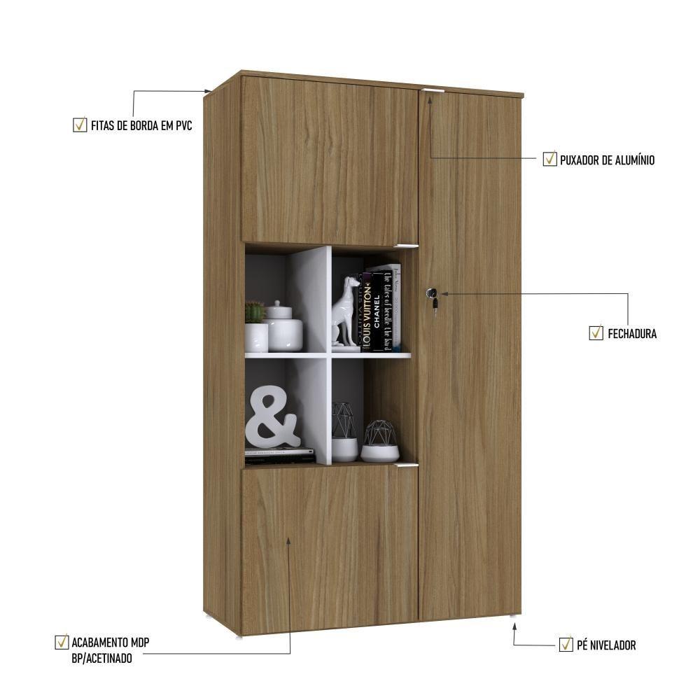Armário Alto C/nicho E 03 Portas 161,5x90x42cm Wlan90 Vermont Oak / Branco Vermont Oak / BrancoSobre o ProdutoArmário Alto C/Nicho e 03 Portas 161,5x90x42cm WLAN90 Vermont Oak / BrancoDescrição do Produto:O Armário Alto com Nicho WLAN90 WorkLab é a escolha perfeita para quem busca um móvel versátil e funcional. Combinando três portas e um nicho aberto, ele oferece espaço de armazenamento e exibição em um único design. Com linhas limpas e detalhes elegantes, suas portas possuem dobradiças com amortecedor que garantem um fechamento suave e silencioso, além dos puxadores em alumínio, discretos e funcionais. Seja para armazenar documentos importantes, exibir sua coleção de livros ou manter seus materiais organizados, o Armário WLAN90 WorkLab é a escolha perfeita para escritórios, home offices ou ambientes corporativos. Ele combina funcionalidade com estilo, elevando a estética do seu espaço de linha WorkLab combina funcionalidade, design contemporâneo e durabilidade para criar um ambiente de trabalho eficiente e inspirador. Com uma ampla variedade de peças versáteis, a WorkLab oferece soluções completas para escritórios, home offices e espaços corporativos. Explore os principais componentes dessa linha e ache a escolha certa para quem busca qualidade, design e funcionalidade em móveis de escritório. Transforme seu espaço de trabalho com a elegância e praticidade da linha Inclusos:1 Armário c/NichoDimensões dos Produtos:Armário Alto C/Nicho e 03 Portas 161,5x90x42cm WLAN90 Vermont Oak / Branco: 90 x 42 x 161,5 cmInformações Logísticas (Comp. X Prof. X Alt.) 164 x 44 x 7 cm - Peso: 26,845 100 x 51 x 11 cm - Peso: 26,74 KgPeso Total: 53,585 KgObservações:Não acompanha acessórios decorativos. Imagens meramente ilustrativas.Informações Técnicas / Características:- Cor do Produto: Vermont Oak / Branco- Cor do Predominante: Marrom Claro- Marca: Metalig- Modelo: WLAN90- Linha: WorkLab- Material: Mdp - Acabamento: BP- Escala de Brilho: Fosco- Fita de Borda: Pvc- Possui Portas: 3- Tipo de Porta: Bater- Tipo da Dobradiça: Metálica C/Amortecedor- Possui Gavetas: Não - Possui Chave: Sim - Material do Puxador: Alumínio- Possui Prateleiras: 5- Peso Máximo por Prateleira: 10kg - Pés Niveladores: Sim - Acabamento Estrutura: BP- Formato: Retangular- Possui Nicho: 4 - Suporta Até (kg): 80kg- Comprimento: 90cm- Profundidade: 42cm- Altura: 161,5cm - Peso Lí.: 52,1Kg- Recomendações de Uso, Manutenção e Limpeza: Para a limpeza, utilize flanela seca ou pano macio levemente umedecido em água. Utilize um pano seco em seguida. Evite com produtos químicos (solventes, thinner, acetona, etc) e não utilize nenhum tipo de esponja de aço.- Necessita de Montagem: Sim / Acompanha Manual de Montagem- Complexidade da Montagem: Alta: deve ser montado por um montador especializado.- Garantia: 6 meses Comprimento: 90 | Largura: 42 | Marca: Compace | Altura: 161,5 | Quantidade máxima de pedido: 1 | Quantidade de volumes: 2 | Modelo: WLAN90 | Necessita montagem: Sim | Profundidade: 42 Cor: Vermont Oak / Branco