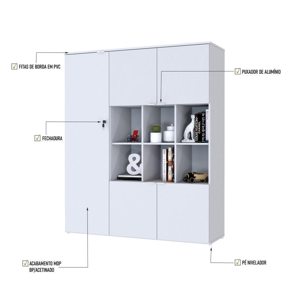 Armário Alto Com nichos E 05 Portas 161,5x135x42cm Wlan135 Branco Chess