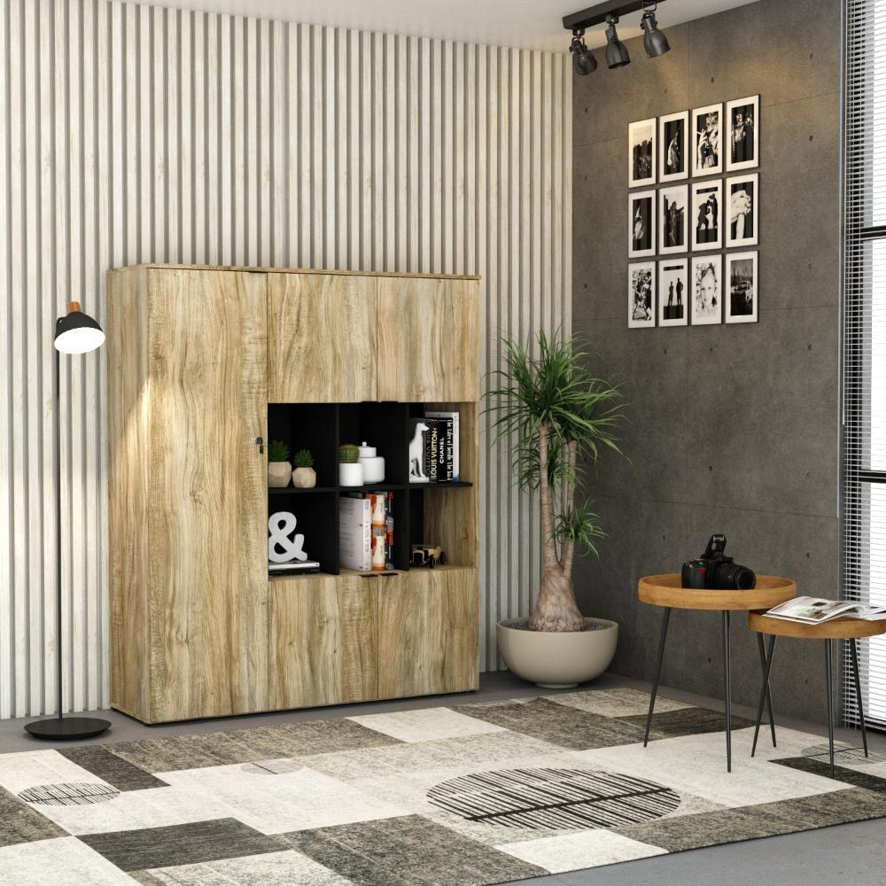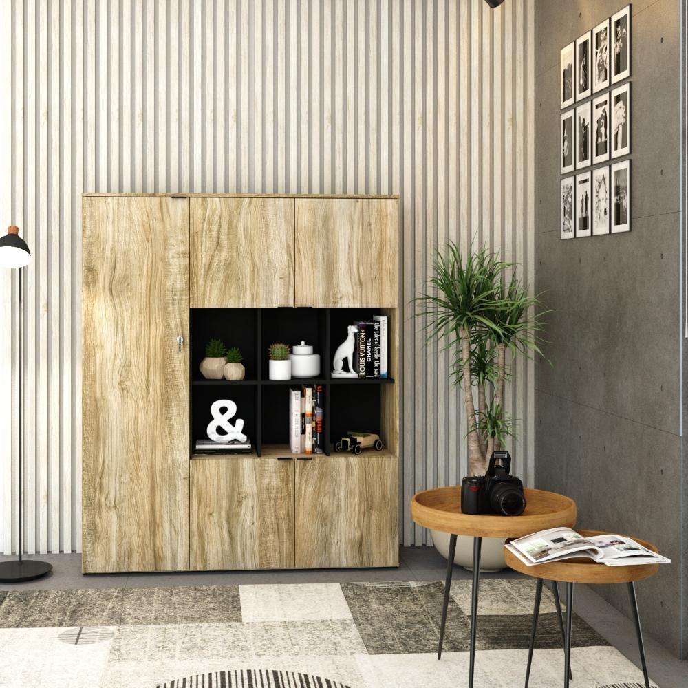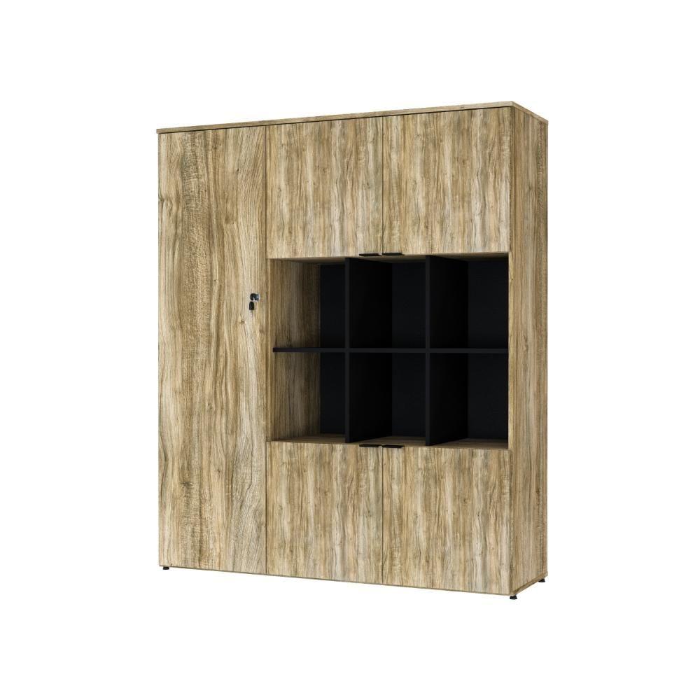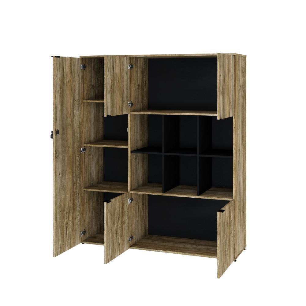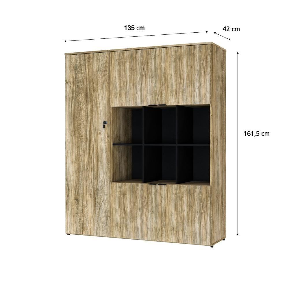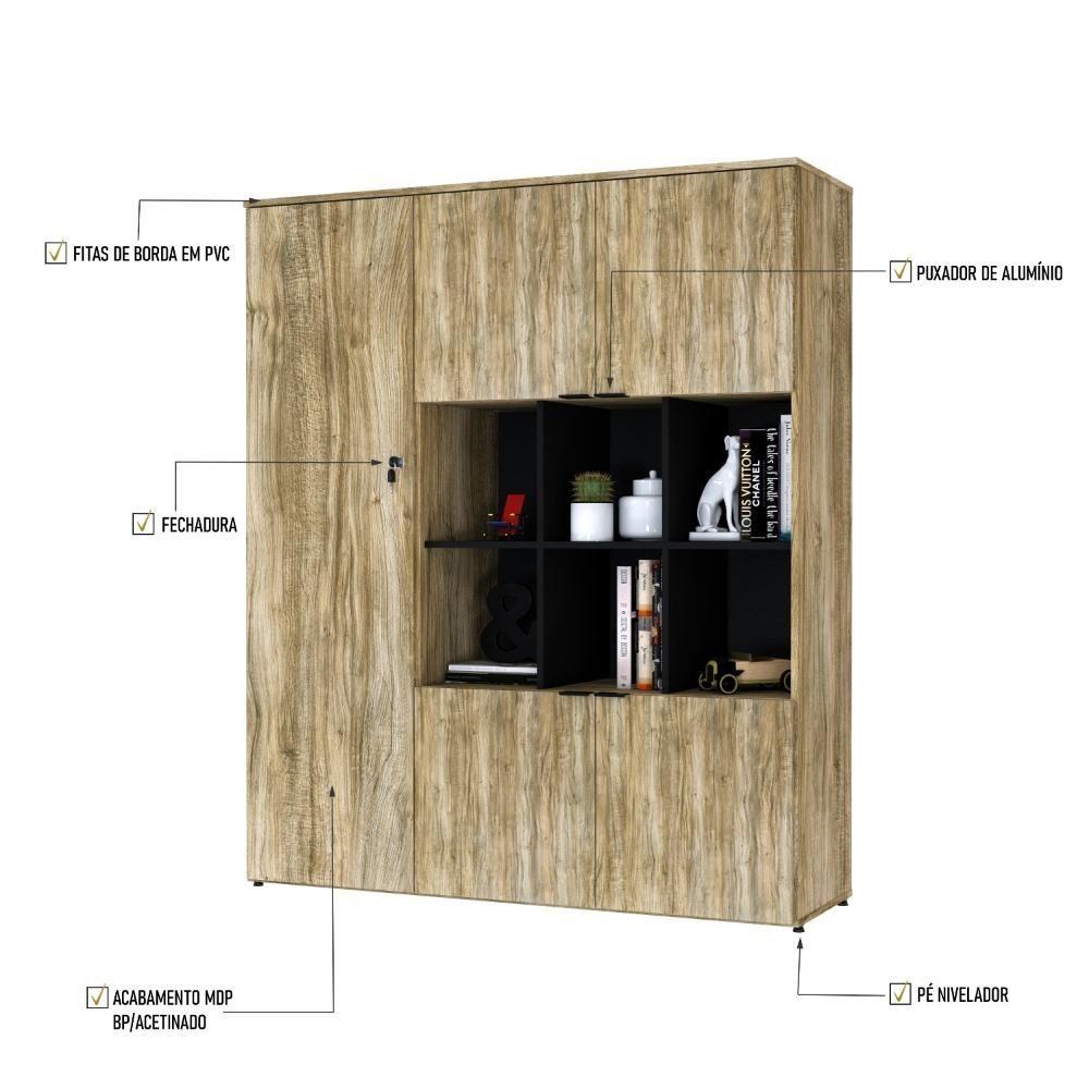 Armário Alto Com nichos E 05 Portas 161,5x135x42cm Wlan135 Carvalho - Preto