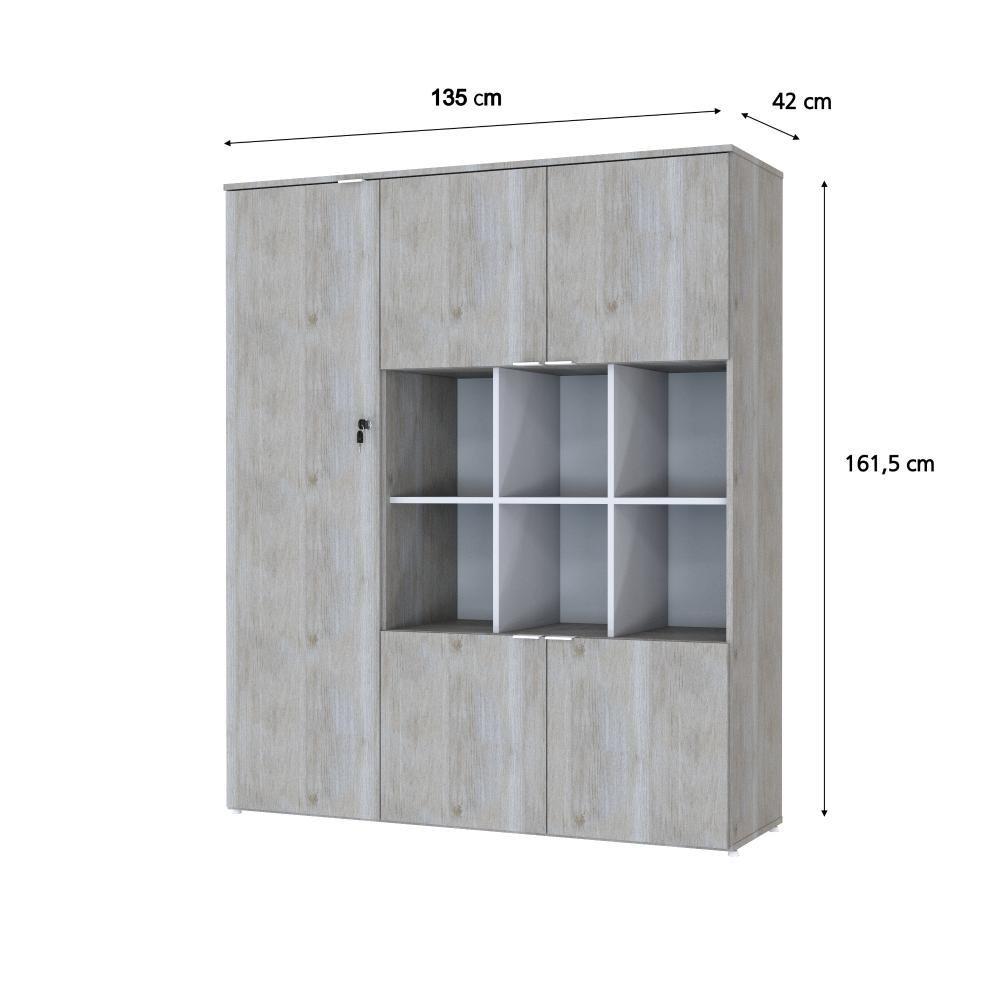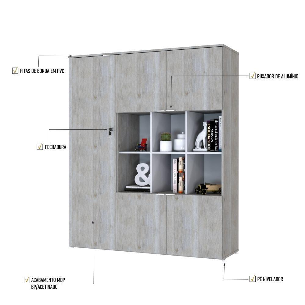 Armário Alto C/nichos E 05 Portas 161,5x135x42cm Wlan135 Snow / Branco Snow / BrancoSobre o ProdutoArmário Alto C/Nichos e 05 Portas 161,5x135x42cm WLAN135 Carvalho / BrancoDescrição do Produto:Armário Alto com Nichos WLAN135 WorkLab é uma peça de mobiliário que alia capacidade de armazenamento com um design elegante e moderno, ideal para escritórios que valorizam tanto a funcionalidade quanto a estética. Com nichos centrais abertos e cinco portas, este armário oferece uma solução de armazenamento diversificada, perfeita para exibir itens decorativos ou manter materiais de consulta rápida à mão. Suas portas possuem dobradiças com amortecedor que garantem um fechamento suave e silencioso, além dos puxadores em alumínio, elegantes e funcionais. O Armário WLAN135 WorkLab é mais que um simples móvel de armazenamento, é uma declaração de estilo que traz organização e sofisticação ao ambiente de linha WorkLab combina funcionalidade, design contemporâneo e durabilidade para criar um ambiente de trabalho eficiente e inspirador. Com uma ampla variedade de peças versáteis, a WorkLab oferece soluções completas para escritórios, home offices e espaços corporativos. Explore os principais componentes dessa linha e ache a escolha certa para quem busca qualidade, design e funcionalidade em móveis de escritório. Transforme seu espaço de trabalho com a elegância e praticidade da linha Inclusos:1 Armário c/NichoDimensões dos Produtos:Armário Alto C/Nichos e 05 Portas 161,5x135x42cm WLAN135 Carvalho / Branco: 135 x 42 x 161,5 cmInformações Logísticas (Comp. X Prof. X Alt.) 163 x 51 x 7,7 cm - Peso: 31,71 139 x 48 x 12,7 cm - Peso: 40,194 KgPeso Total: 71,904 KgObservações:Não acompanha acessórios decorativos. Imagens meramente ilustrativas.Informações Técnicas / Características:- Cor do Produto: Carvalho / Branco- Cor do Predominante: Marrom Claro- Marca: Compace- Modelo: WLAN135- Linha: WorkLab- Material: Mdp - Acabamento: Perffect Acetinado- Escala de Brilho: Fosco- Fita de Borda: Pvc- Possui Portas: 5- Tipo de Porta: Bater- Tipo da Dobradiça: Metálica C/Amortecedor- Possui Gavetas: Não - Possui Chave: Sim - Material do Puxador: Alumínio- Possui Prateleiras: 5- Peso Máximo por Prateleira: 10kg - Pés Niveladores: Sim - Acabamento Estrutura: BP- Formato: Retangular- Possui Nicho: 6 - Suporta Até (kg): 90kg- Comprimento: 135cm- Profundidade: 42cm- Altura: 161,5cm - Peso Lí.: 70,29Kg- Recomendações de Uso, Manutenção e Limpeza: Para a limpeza, utilize flanela seca ou pano macio levemente umedecido em água. Utilize um pano seco em seguida. Evite com produtos químicos (solventes, thinner, acetona, etc) e não utilize nenhum tipo de esponja de aço.- Necessita de Montagem: Sim / Acompanha Manual de Montagem- Complexidade da Montagem: Alta: deve ser montado por um montador especializado.- Garantia: 6 meses Comprimento: 135 | Largura: 42 | Marca: Compace | Altura: 161,5 | Necessita montagem: Sim | Modelo: WLAN135 | Quantidade máxima de pedido: 1 | Quantidade de volumes: 2 | Profundidade: 42 Cor: Snow / Branco