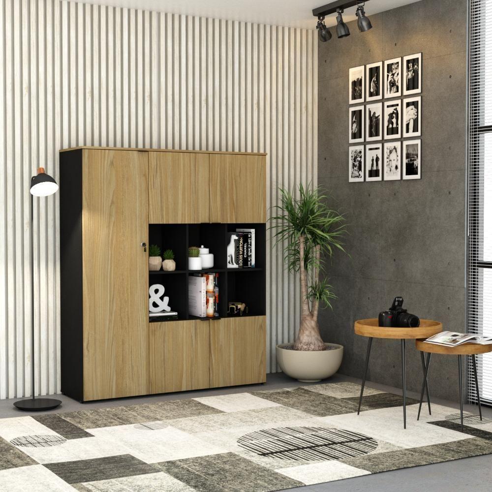 Armário Alto C/nichos E 05 Portas 161,5x135x42cm Wlan135 Preto Tx C/vermont Oak Preto Tx C/vermont OakSobre o ProdutoArmário Alto C/Nichos e 05 Portas 161,5x135x42cm WLAN135 Branco TX C/Vermont OakDescrição do Produto:Armário Alto com Nichos WLAN135 WorkLab é uma peça de mobiliário que alia capacidade de armazenamento com um design elegante e moderno, ideal para escritórios que valorizam tanto a funcionalidade quanto a estética. Com nichos centrais abertos e cinco portas, este armário oferece uma solução de armazenamento diversificada, perfeita para exibir itens decorativos ou manter materiais de consulta rápida à mão. Suas portas possuem dobradiças com amortecedor que garantem um fechamento suave e silencioso, além dos puxadores em alumínio, elegantes e funcionais. O Armário WLAN135 WorkLab é mais que um simples móvel de armazenamento, é uma declaração de estilo que traz organização e sofisticação ao ambiente de linha WorkLab combina funcionalidade, design contemporâneo e durabilidade para criar um ambiente de trabalho eficiente e inspirador. Com uma ampla variedade de peças versáteis, a WorkLab oferece soluções completas para escritórios, home offices e espaços corporativos. Explore os principais componentes dessa linha e ache a escolha certa para quem busca qualidade, design e funcionalidade em móveis de escritório. Transforme seu espaço de trabalho com a elegância e praticidade da linha Inclusos:1 Armário c/NichoDimensões dos Produtos:Armário Alto C/Nichos e 05 Portas 161,5x135x42cm WLAN135 Branco TX C/Vermont Oak: 135 x 42 x 161,5 cmInformações Logísticas (Comp. X Prof. X Alt.) 163 x 51 x 7,7 cm - Peso: 31,71 139 x 48 x 12,7 cm - Peso: 40,194 KgPeso Total: 71,904 KgObservações:Não acompanha acessórios decorativos. Imagens meramente ilustrativas.Informações Técnicas / Características:- Cor do Produto: Branco TX C/Vermont Oak- Cor do Predominante: Branco- Marca: Metalig- Modelo: WLAN135- Linha: WorkLab- Material: Mdp - Acabamento: BP- Escala de Brilho: Fosco- Fita de Borda: Pvc- Possui Portas: 5- Tipo de Porta: Bater- Tipo da Dobradiça: Metálica C/Amortecedor- Possui Gavetas: Não - Possui Chave: Sim - Material do Puxador: Alumínio- Possui Prateleiras: 5- Peso Máximo por Prateleira: 10kg - Pés Niveladores: Sim - Acabamento Estrutura: BP- Formato: Retangular- Possui Nicho: 6 - Suporta Até (kg): 90kg- Comprimento: 135cm- Profundidade: 42cm- Altura: 161,5cm - Peso Lí.: 70,29Kg- Recomendações de Uso, Manutenção e Limpeza: Para a limpeza, utilize flanela seca ou pano macio levemente umedecido em água. Utilize um pano seco em seguida. Evite com produtos químicos (solventes, thinner, acetona, etc) e não utilize nenhum tipo de esponja de aço.- Necessita de Montagem: Sim / Acompanha Manual de Montagem- Complexidade da Montagem: Alta: deve ser montado por um montador especializado.- Garantia: 6 meses Comprimento: 135 | Largura: 42 | Marca: Compace | Altura: 161,5 | Necessita montagem: Sim | Modelo: WLAN135 | Quantidade máxima de pedido: 1 | Quantidade de volumes: 2 | Profundidade: 42 Cor: Preto TX C/Vermont Oak