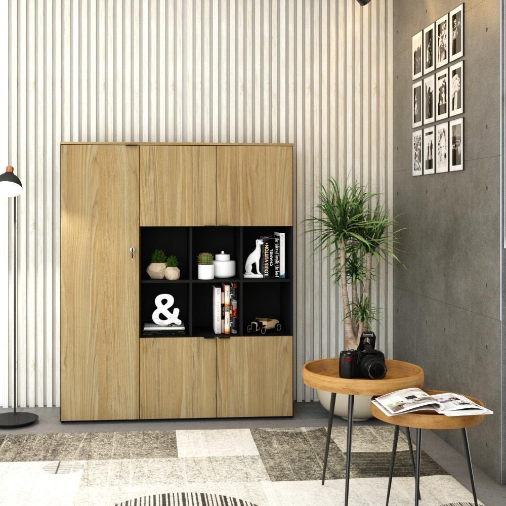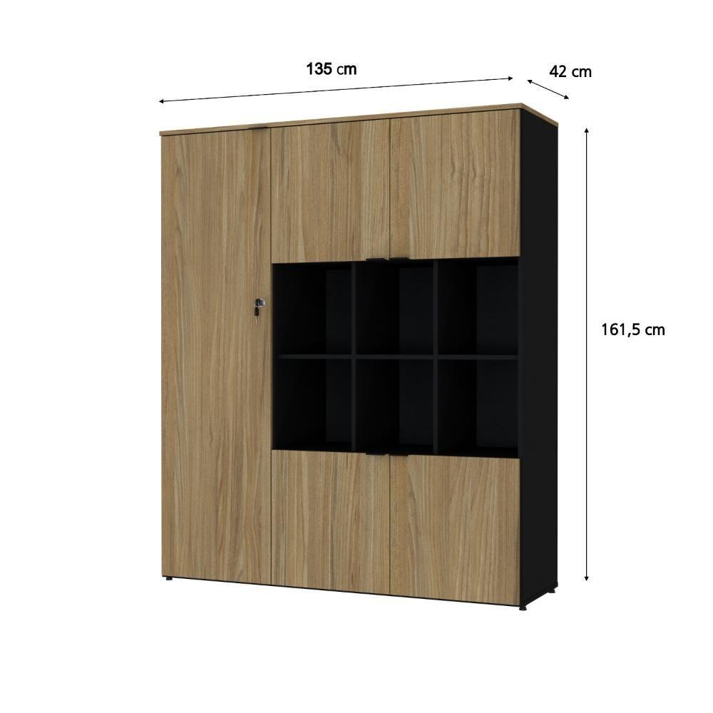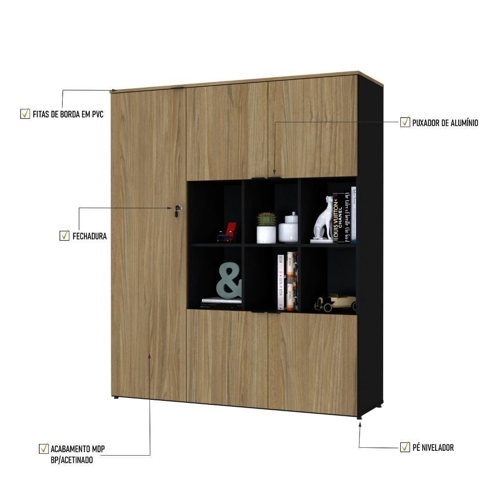 Armário Alto Com nichos E 05 Portas 161,5x135x42cm Wlan135 Preto Tx Com vermont Oak