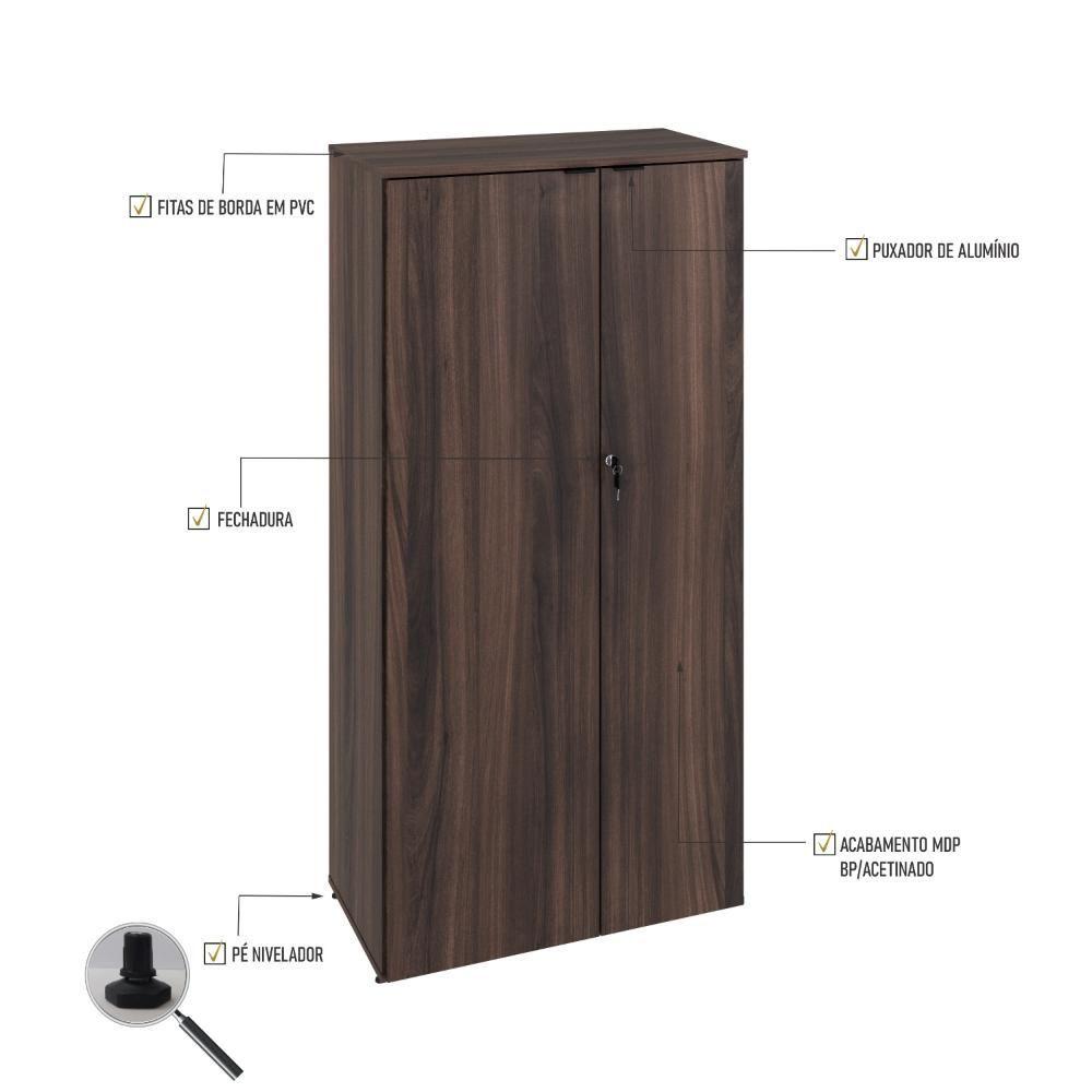 Armário Alto Fechado Com 02 Portas 161,5x80x42cm Wlaf80 Nogal - Preto