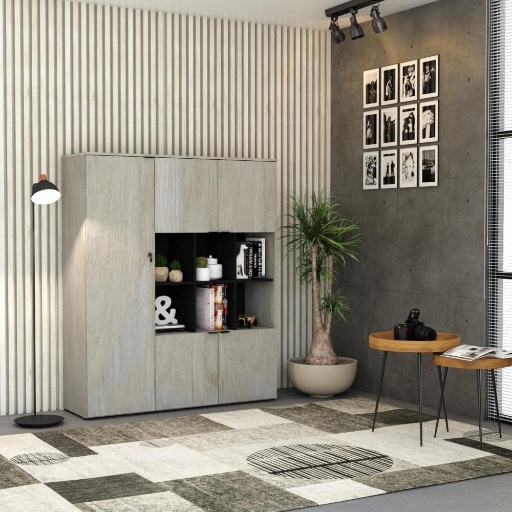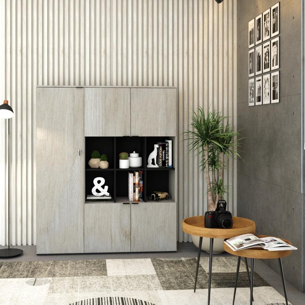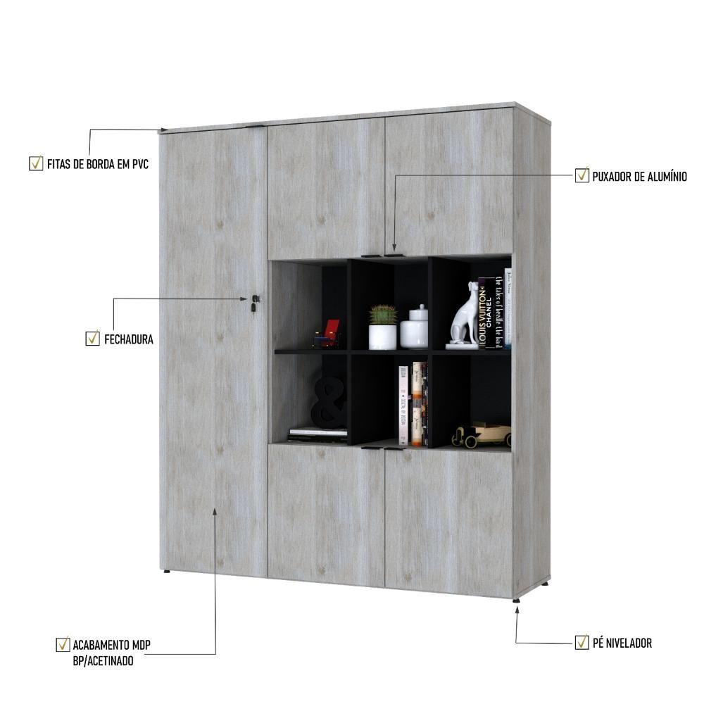 Armário Alto Com nichos E 05 Portas 161,5x135x42cm Wlan135 Snow - Preto