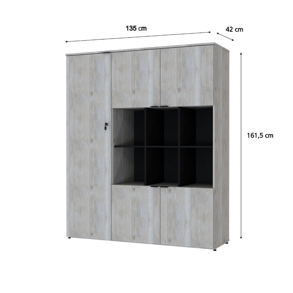 Armário Alto C/nichos E 05 Portas 161,5x135x42cm Wlan135 Snow / Preto Snow / PretoSobre o ProdutoArmário Alto C/Nichos e 05 Portas 161,5x135x42cm WLAN135 Carvalho / BrancoDescrição do Produto:Armário Alto com Nichos WLAN135 WorkLab é uma peça de mobiliário que alia capacidade de armazenamento com um design elegante e moderno, ideal para escritórios que valorizam tanto a funcionalidade quanto a estética. Com nichos centrais abertos e cinco portas, este armário oferece uma solução de armazenamento diversificada, perfeita para exibir itens decorativos ou manter materiais de consulta rápida à mão. Suas portas possuem dobradiças com amortecedor que garantem um fechamento suave e silencioso, além dos puxadores em alumínio, elegantes e funcionais. O Armário WLAN135 WorkLab é mais que um simples móvel de armazenamento, é uma declaração de estilo que traz organização e sofisticação ao ambiente de linha WorkLab combina funcionalidade, design contemporâneo e durabilidade para criar um ambiente de trabalho eficiente e inspirador. Com uma ampla variedade de peças versáteis, a WorkLab oferece soluções completas para escritórios, home offices e espaços corporativos. Explore os principais componentes dessa linha e ache a escolha certa para quem busca qualidade, design e funcionalidade em móveis de escritório. Transforme seu espaço de trabalho com a elegância e praticidade da linha Inclusos:1 Armário c/NichoDimensões dos Produtos:Armário Alto C/Nichos e 05 Portas 161,5x135x42cm WLAN135 Carvalho / Branco: 135 x 42 x 161,5 cmInformações Logísticas (Comp. X Prof. X Alt.) 163 x 51 x 7,7 cm - Peso: 31,71 139 x 48 x 12,7 cm - Peso: 40,194 KgPeso Total: 71,904 KgObservações:Não acompanha acessórios decorativos. Imagens meramente ilustrativas.Informações Técnicas / Características:- Cor do Produto: Carvalho / Branco- Cor do Predominante: Marrom Claro- Marca: Compace- Modelo: WLAN135- Linha: WorkLab- Material: Mdp - Acabamento: Perffect Acetinado- Escala de Brilho: Fosco- Fita de Borda: Pvc- Possui Portas: 5- Tipo de Porta: Bater- Tipo da Dobradiça: Metálica C/Amortecedor- Possui Gavetas: Não - Possui Chave: Sim - Material do Puxador: Alumínio- Possui Prateleiras: 5- Peso Máximo por Prateleira: 10kg - Pés Niveladores: Sim - Acabamento Estrutura: BP- Formato: Retangular- Possui Nicho: 6 - Suporta Até (kg): 90kg- Comprimento: 135cm- Profundidade: 42cm- Altura: 161,5cm - Peso Lí.: 70,29Kg- Recomendações de Uso, Manutenção e Limpeza: Para a limpeza, utilize flanela seca ou pano macio levemente umedecido em água. Utilize um pano seco em seguida. Evite com produtos químicos (solventes, thinner, acetona, etc) e não utilize nenhum tipo de esponja de aço.- Necessita de Montagem: Sim / Acompanha Manual de Montagem- Complexidade da Montagem: Alta: deve ser montado por um montador especializado.- Garantia: 6 meses Comprimento: 135 | Largura: 42 | Marca: Compace | Altura: 161,5 | Necessita montagem: Sim | Modelo: WLAN135 | Quantidade máxima de pedido: 1 | Quantidade de volumes: 2 | Profundidade: 42 Cor: Snow / Preto