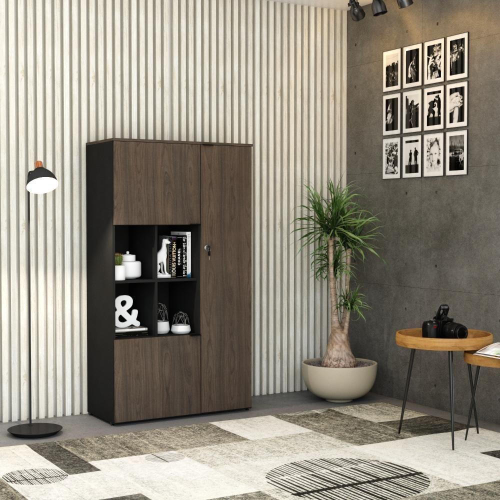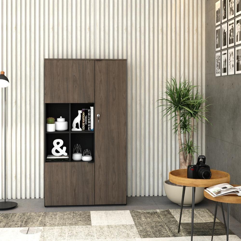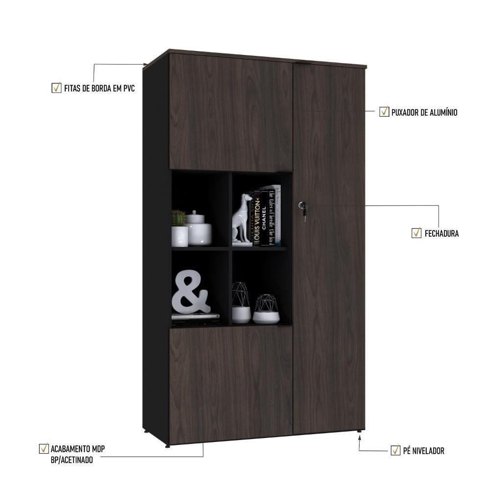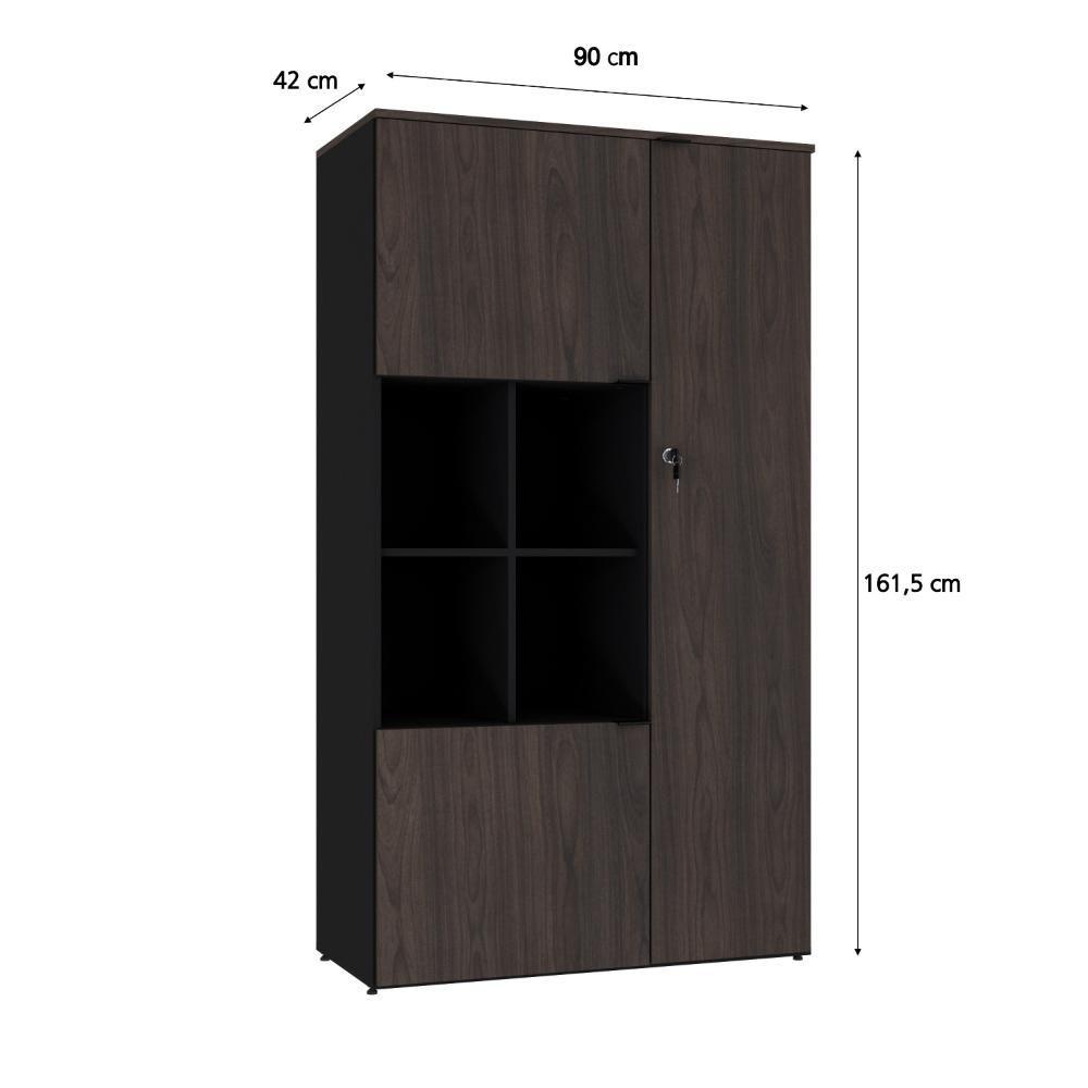 Armário Alto Com nicho E 03 Portas 161,5x90x42cm Wlan90 Preto Tx Com terracota