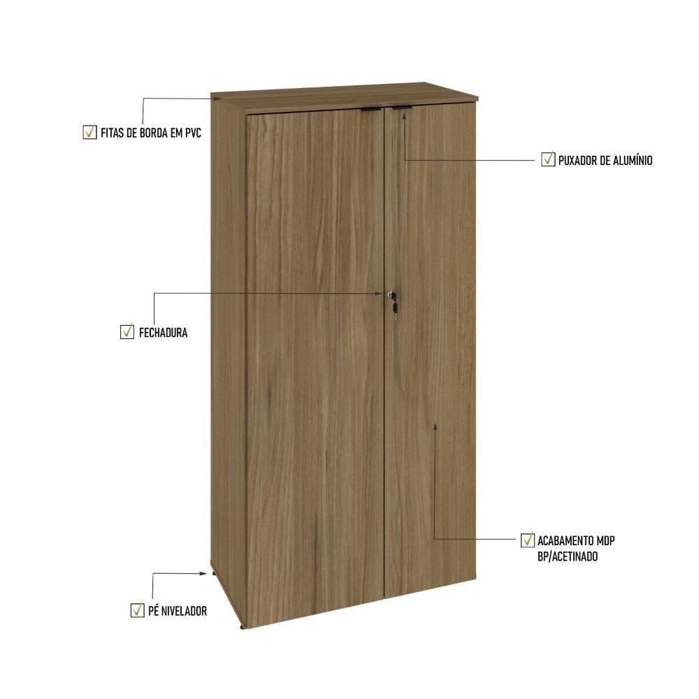 Armário Alto Fechado C/02 Portas 161,5x80x42cm Wlaf80 Vermont Oak / Preto Vermont Oak / PretoSobre o ProdutoArmário Alto Fechado C/02 Portas 161,5x80x42cm WLAF80 Vermont Oak / BrancoDescrição do Produto:O Armário Alto Fechado WLAF80 WorkLab é a escolha perfeita para quem busca um móvel de escritório que combine praticidade e elegância. Com duas portas fechadas e três prateleiras, ele oferece um espaço de armazenamento versátil e bem organizado. Suas portas possuem dobradiças com amortecedor que garantem um fechamento suave e silencioso, além dos puxadores em alumínio, elegantes e funcionais. Seja para organizar documentos importantes ou manter seus materiais à mão, o Armário WLAF80 WorkLab é a escolha ideal, combinando funcionalidade com estilo e proporcionando um ambiente de trabalho mais eficiente e linha WorkLab combina funcionalidade, design contemporâneo e durabilidade para criar um ambiente de trabalho eficiente e inspirador. Com uma ampla variedade de peças versáteis, a WorkLab oferece soluções completas para escritórios, home offices e espaços corporativos. Explore os principais componentes dessa linha e ache a escolha certa para quem busca qualidade, design e funcionalidade em móveis de escritório. Transforme seu espaço de trabalho com a elegância e praticidade da linha Inclusos:1 Armário FechadoDimensões dos Produtos:Armário Alto Fechado C/02 Portas 161,5x80x42cm WLAF80 Vermont Oak / Branco: 80 x 42 x 161,5 cmInformações Logísticas (Comp. X Prof. X Alt.) 168 x 50 x 11,5 cm - Peso: 44,073 KgPeso Total: 44,073 KgObservações:Não acompanha acessórios decorativos. Imagens meramente ilustrativas.Informações Técnicas / Características:- Cor do Produto: Vermont Oak / Branco- Cor do Predominante: Marrom Claro- Marca: Metalig- Modelo: WLAF80- Linha: WorkLab- Material: Mdp - Acabamento: BP- Escala de Brilho: Fosco- Fita de Borda: Pvc- Possui Portas: 2- Tipo de Porta: Bater- Tipo da Dobradiça: Metálica C/Amortecedor- Possui Gavetas: Não - Possui Chave: Sim - Material do Puxador: Alumínio- Possui Prateleiras: 3- Peso Máximo por Prateleira: 10kg - Pés Niveladores: Sim - Acabamento Estrutura: BP- Formato: Retangular - Suporta Até (kg): 55kg- Comprimento: 80cm- Profundidade: 42cm- Altura: 161,5cm - Peso Lí.: 43,03Kg- Recomendações de Uso, Manutenção e Limpeza: Para a limpeza, utilize flanela seca ou pano macio levemente umedecido em água. Utilize um pano seco em seguida. Evite com produtos químicos (solventes, thinner, acetona, etc) e não utilize nenhum tipo de esponja de aço.- Necessita de Montagem: Sim / Acompanha Manual de Montagem- Complexidade da Montagem: Média: pode ser montado por mais de uma pessoa e/ou necessite de maior conhecimento para montagem.- Garantia: 6 meses Quantidade de volumes: 1 | Altura: 161,5 | Comprimento: 80 | Marca: Compace | Necessita montagem: Sim | Modelo: WLAF80 | Quantidade máxima de pedido: 1 | Largura: 42 | Profundidade: 42 Cor: Vermont Oak / Preto