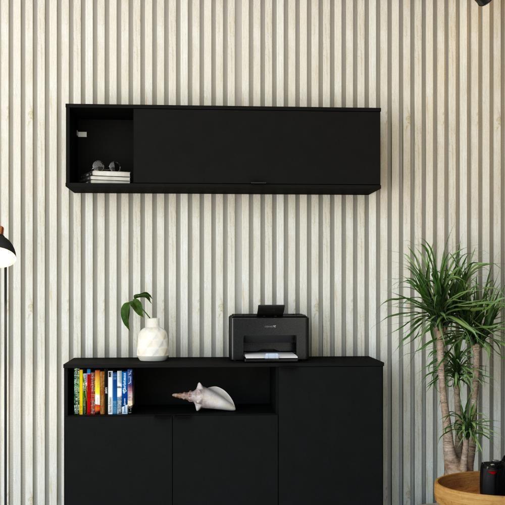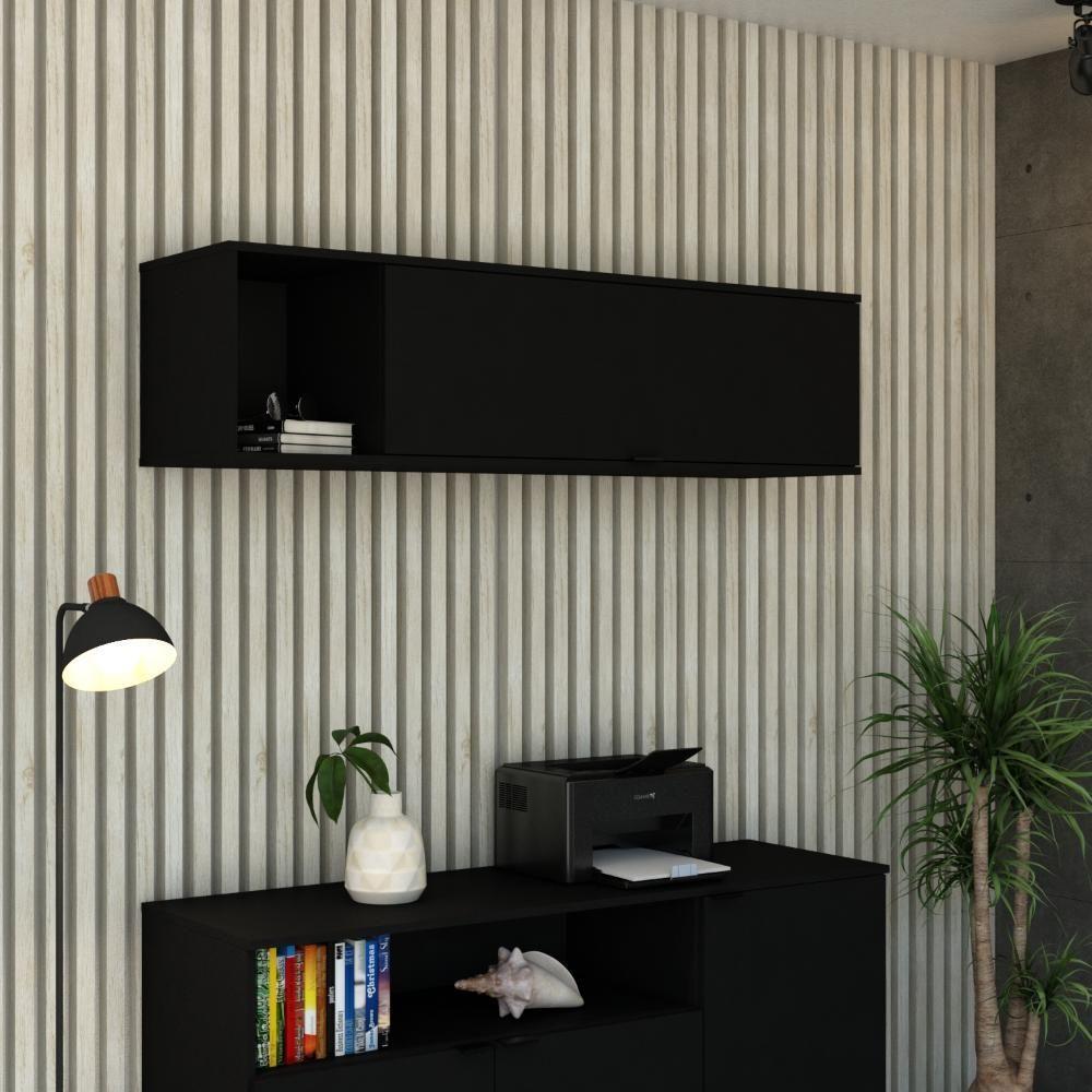 Armário Aéreo Com Nicho E Porta Basculante 35x135x35cm Wlnp135 Preto Ônix
