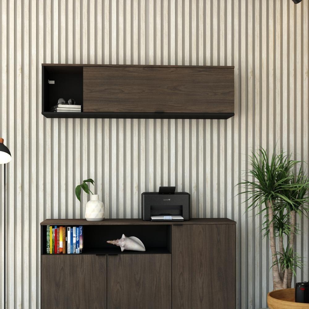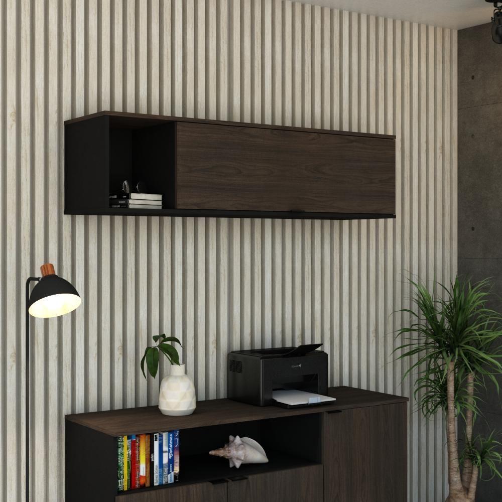 Armário Aéreo Com Nicho E Porta Basculante 35x135x35cm Wlnp135 Preto Tx Com Terracota