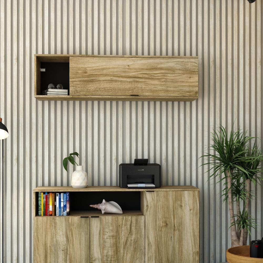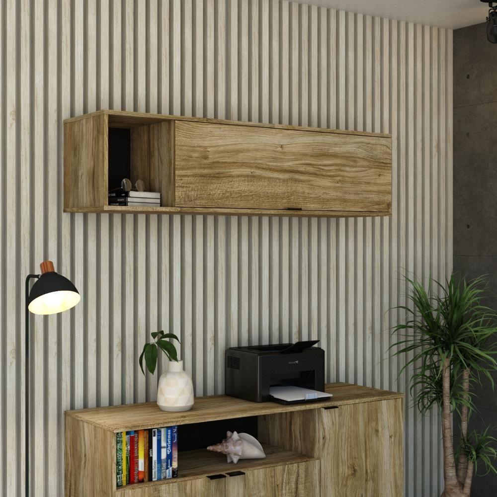 Armário Aéreo Com Nicho E Porta Basculante 35x135x35cm Wlnp135 Carvalho Preto Carvalho Preto