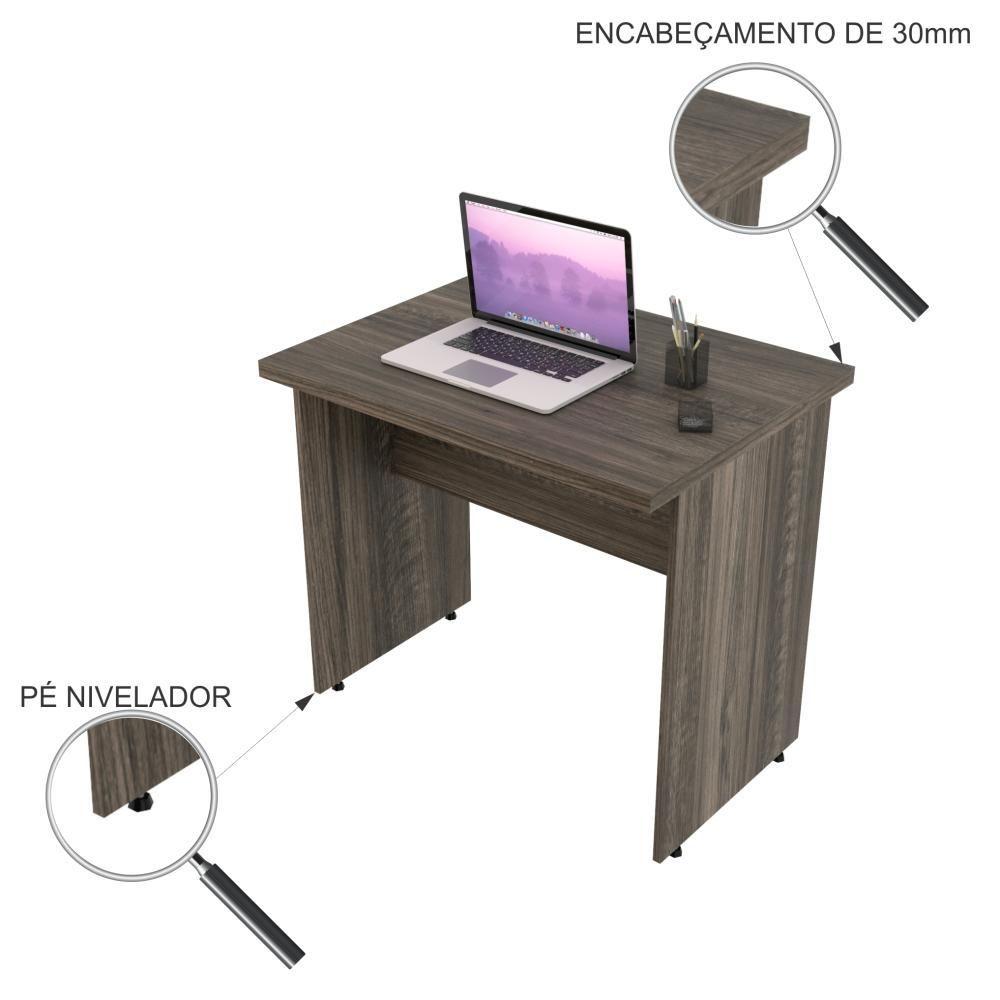 Escrivaninha Mesa De Escritório 0,80m Tampo 30mm Work30 Carvalho Dark