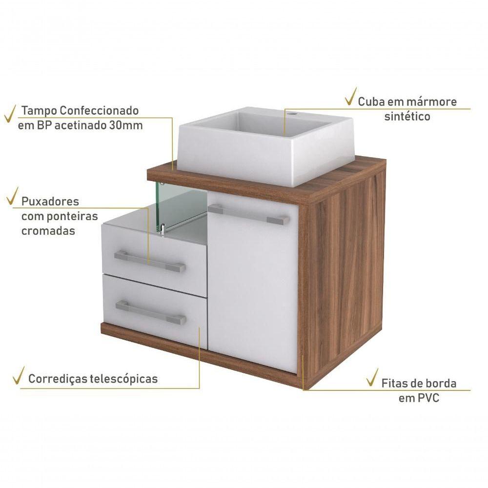 Gabinete Armario P-banheiro (balcao C-cuba Q355) Legno 650 Branco Chess C-nogal