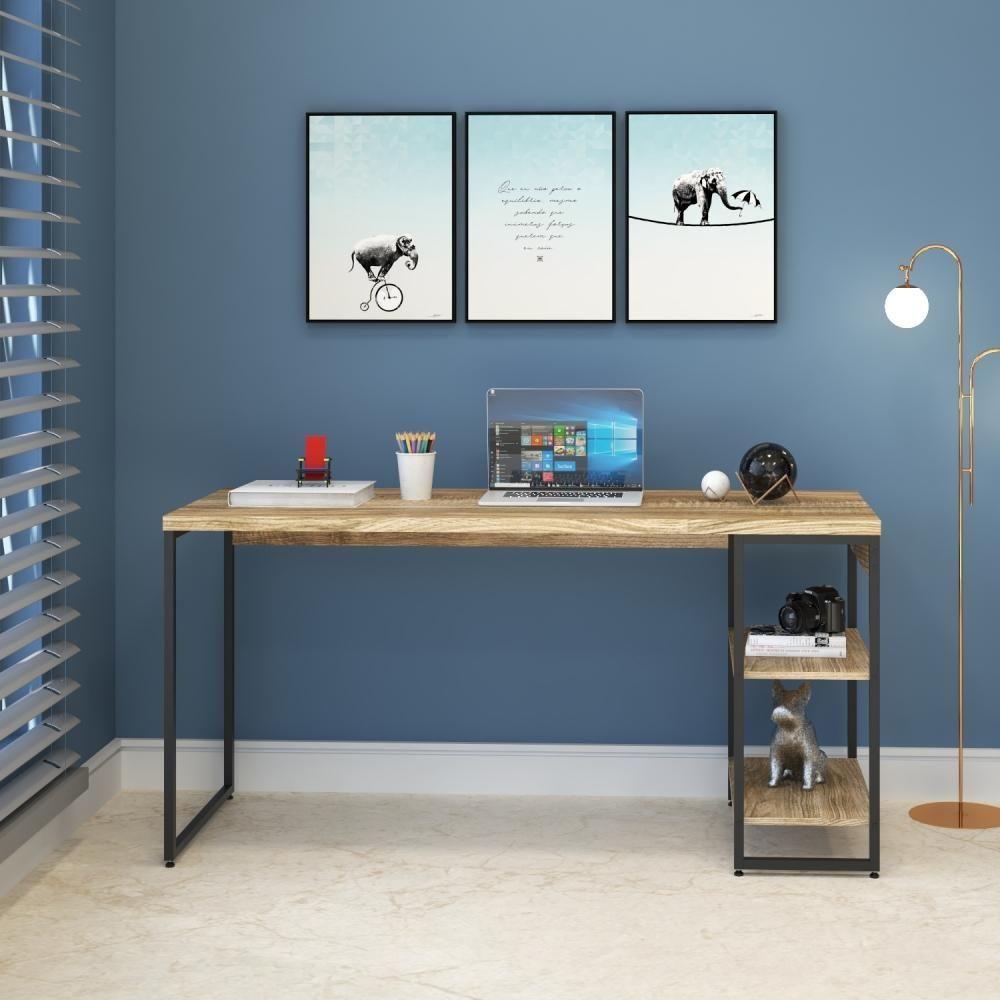 Mesa C/estante Baixa 150x64x75cm Com 02 Prateleiras Carvalho Est.preta