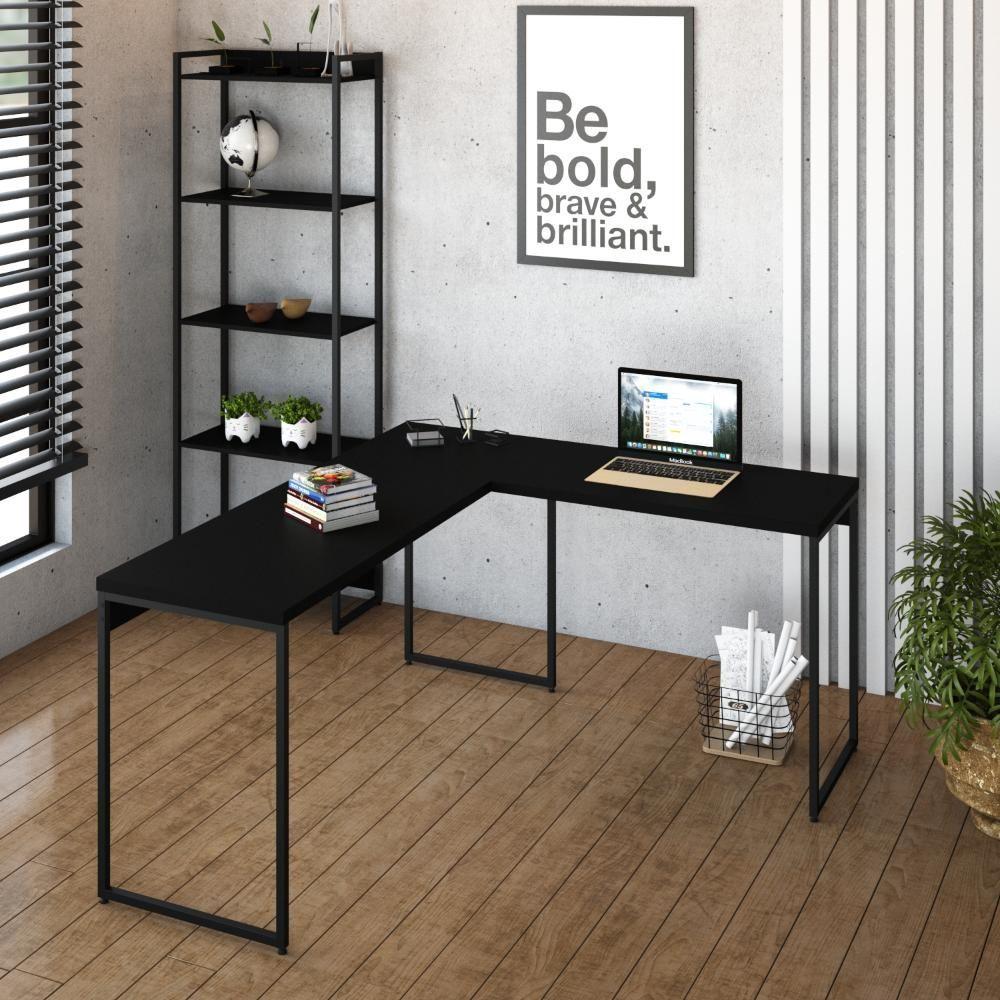 Mesa Em L Dynamica Diretor 150x140x75cm Preto ônix Estrutura preta