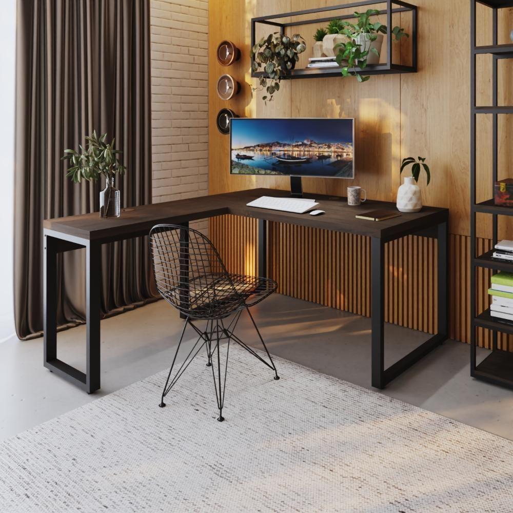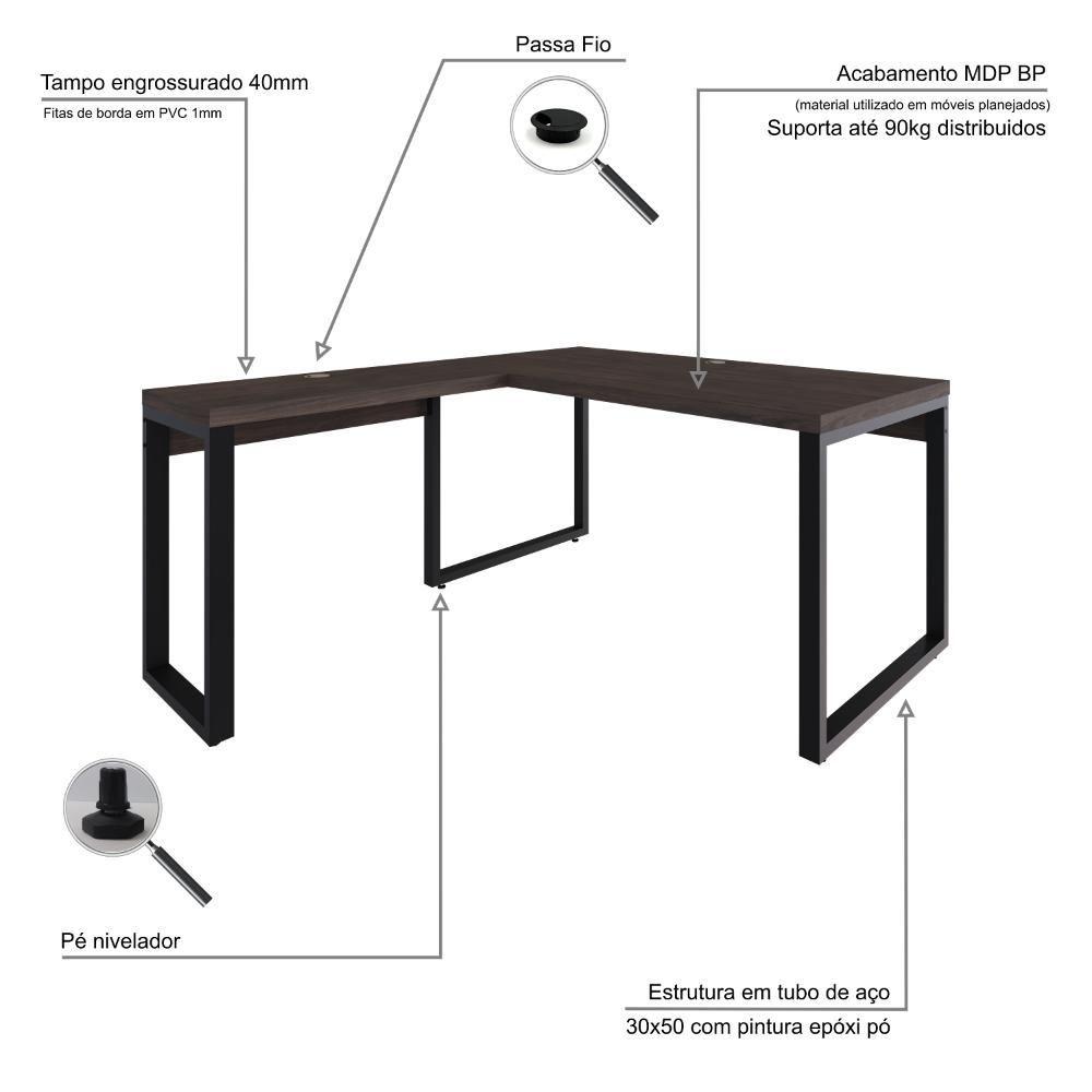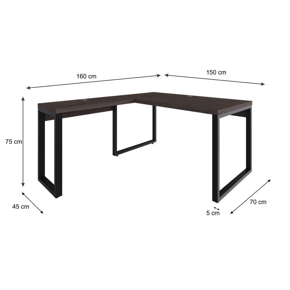 Mesa Em L Diretor 150x160x75cm Yon Terracota-est.preta Terracota-est.preta